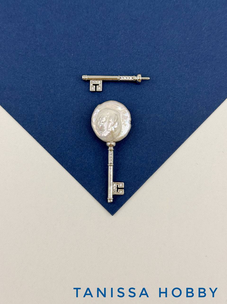 Ключ с фианитами для вклейки, 26мм, Категория В, родий, В126