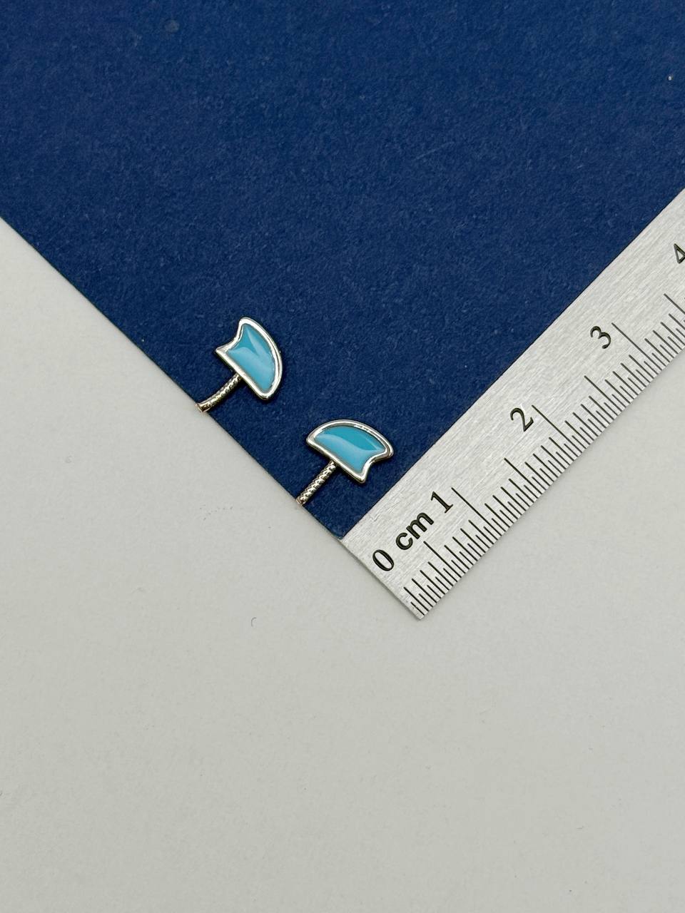 Ушки, рожки для вклейки, голубая эмаль, 7х4мм, пара, родий, В106