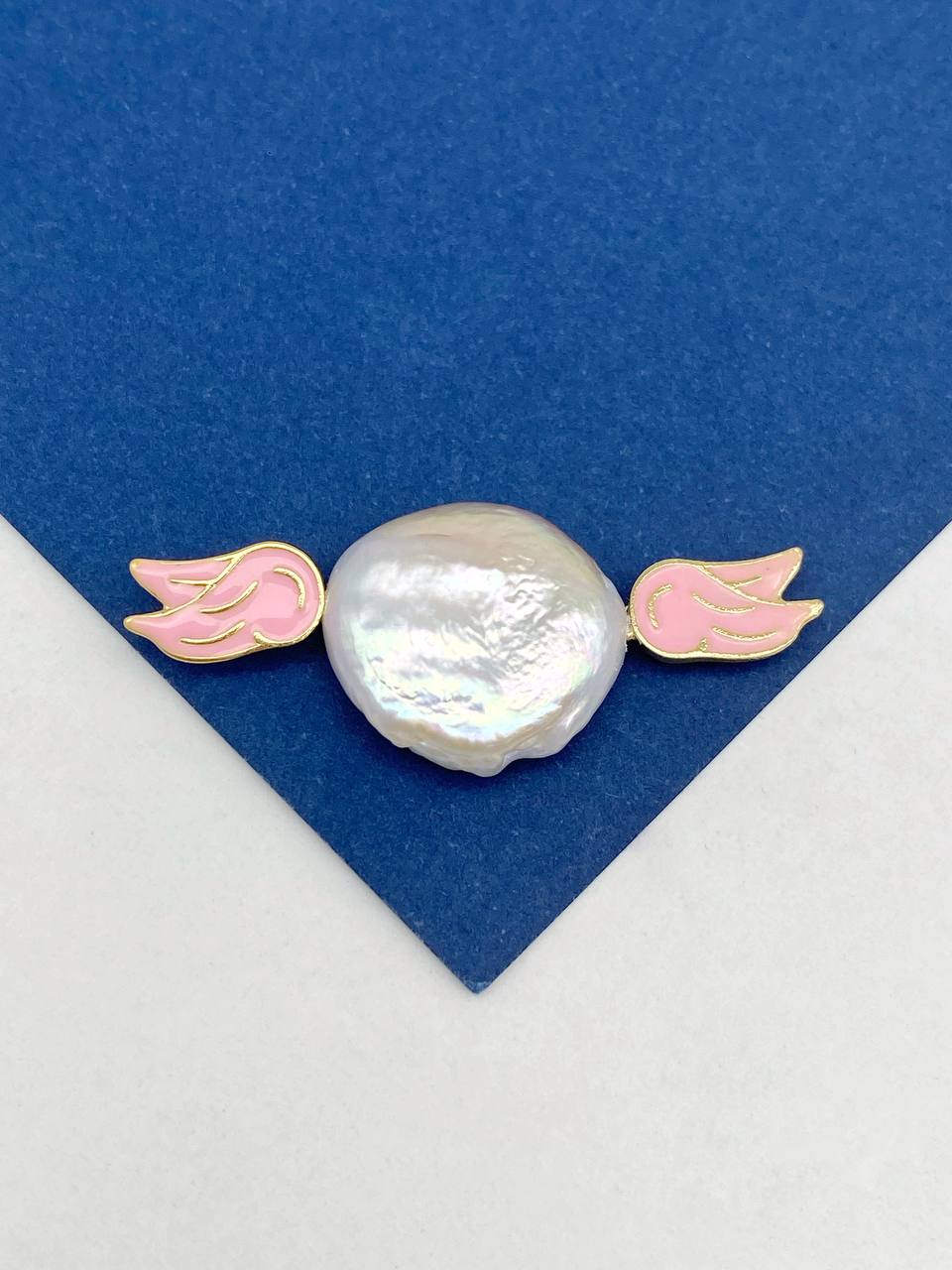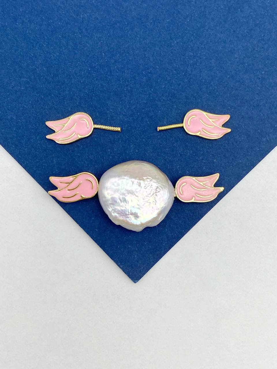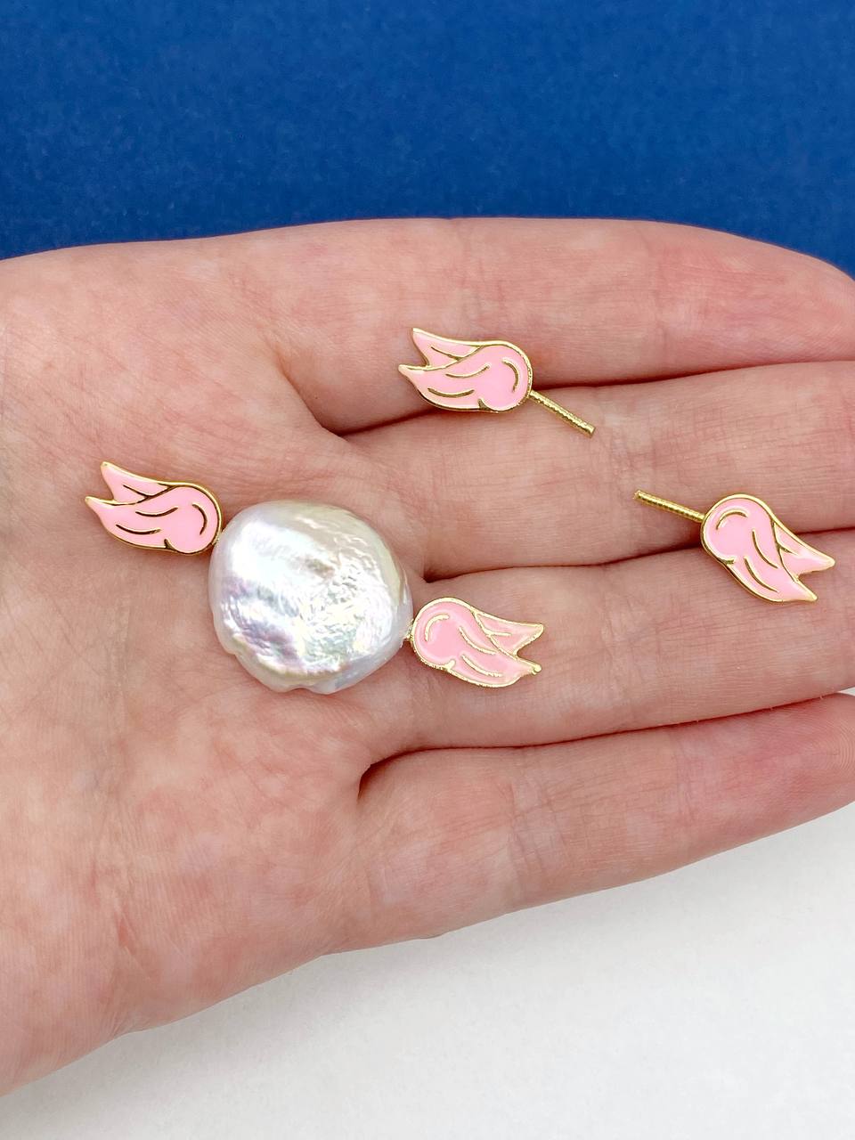 Крылья для вклейки, розовая эмаль, 12х7мм, ПАРА, позолота, В123
