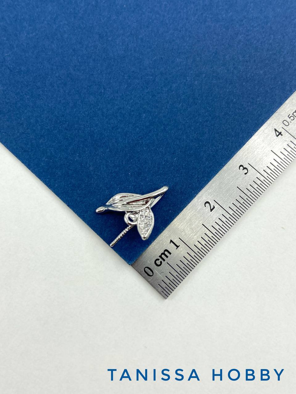 Подвеска коннектор веточка и листики для вклейки, родий, В315