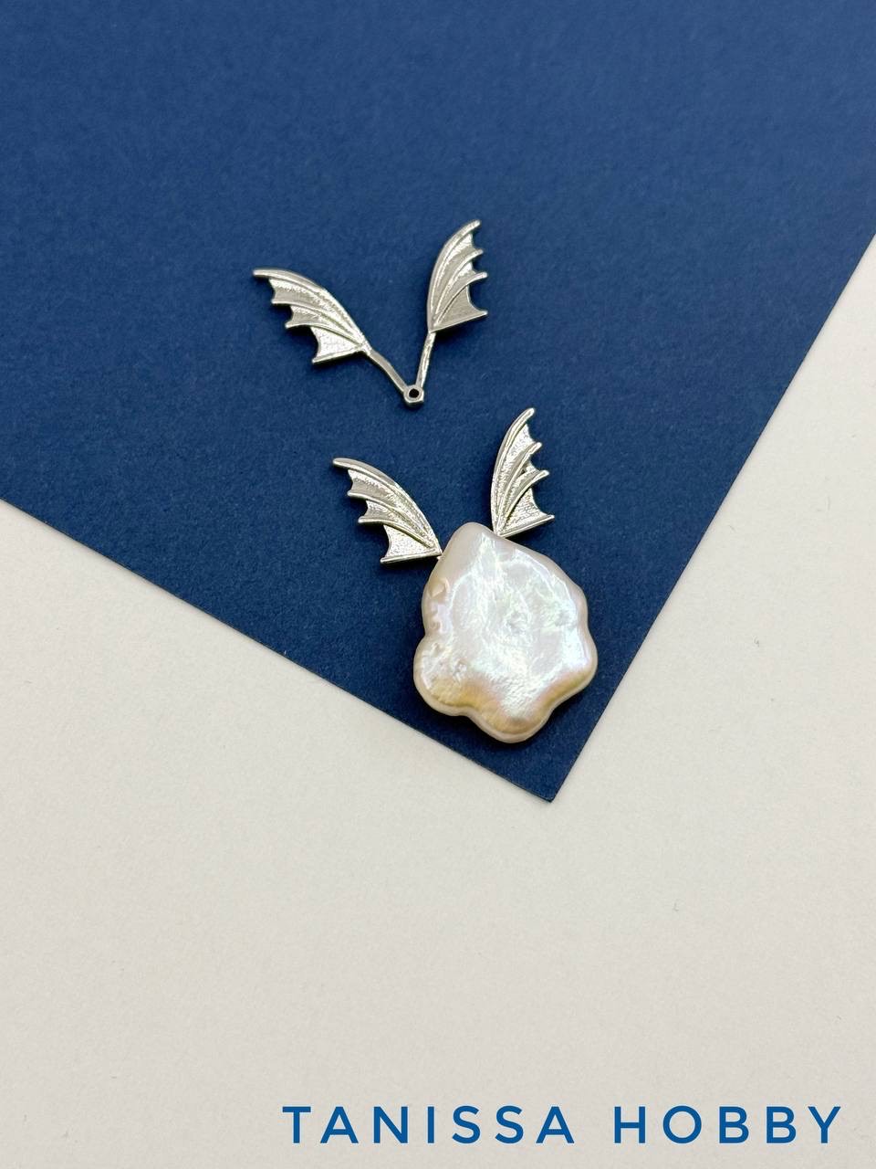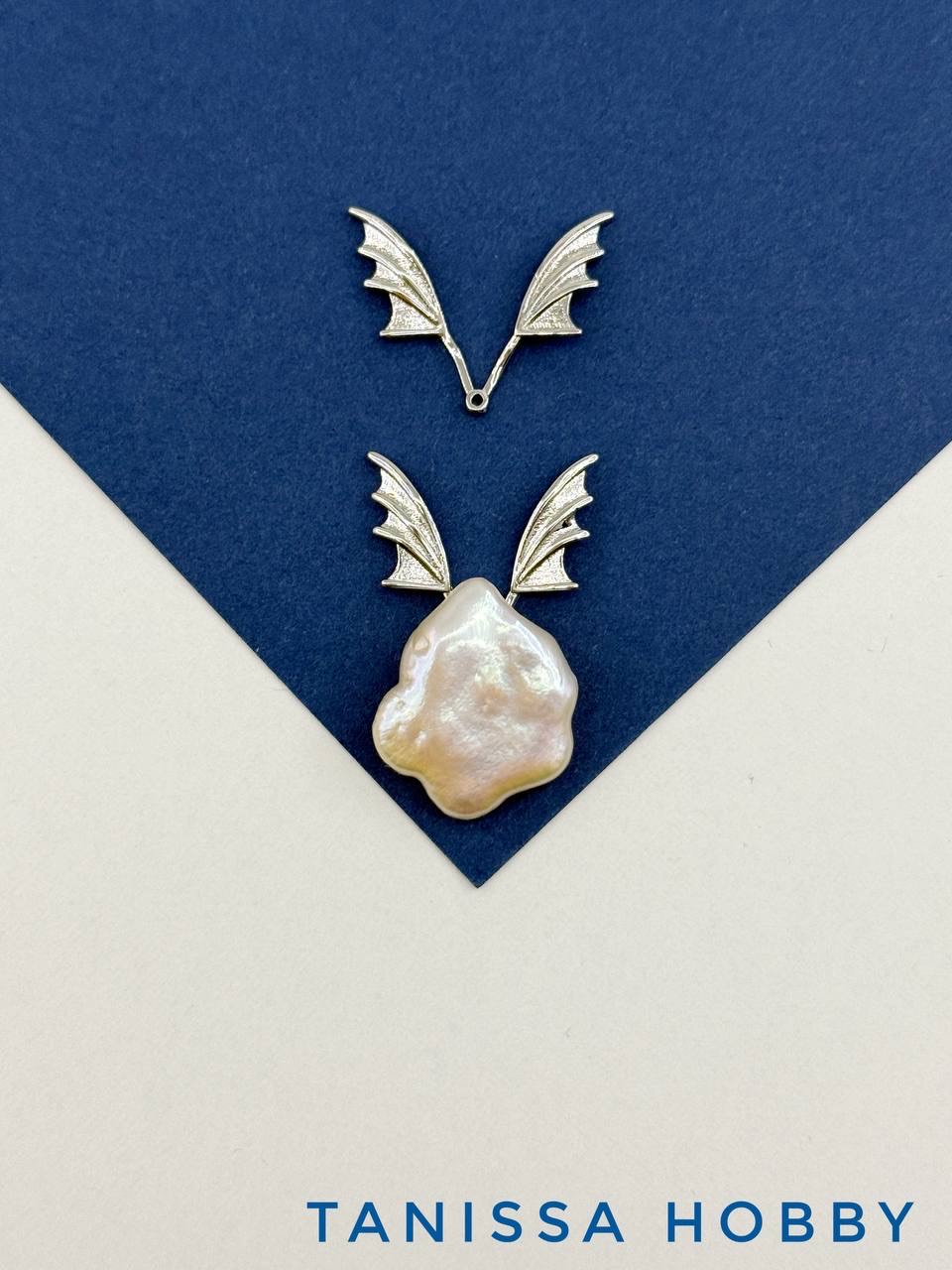 -Крылья летучая мышь для вклейки, 13х6мм, родий, В318