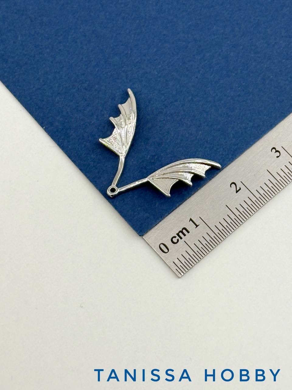 Крылья летучая мышь для вклейки, 13х6мм, родий, В318
