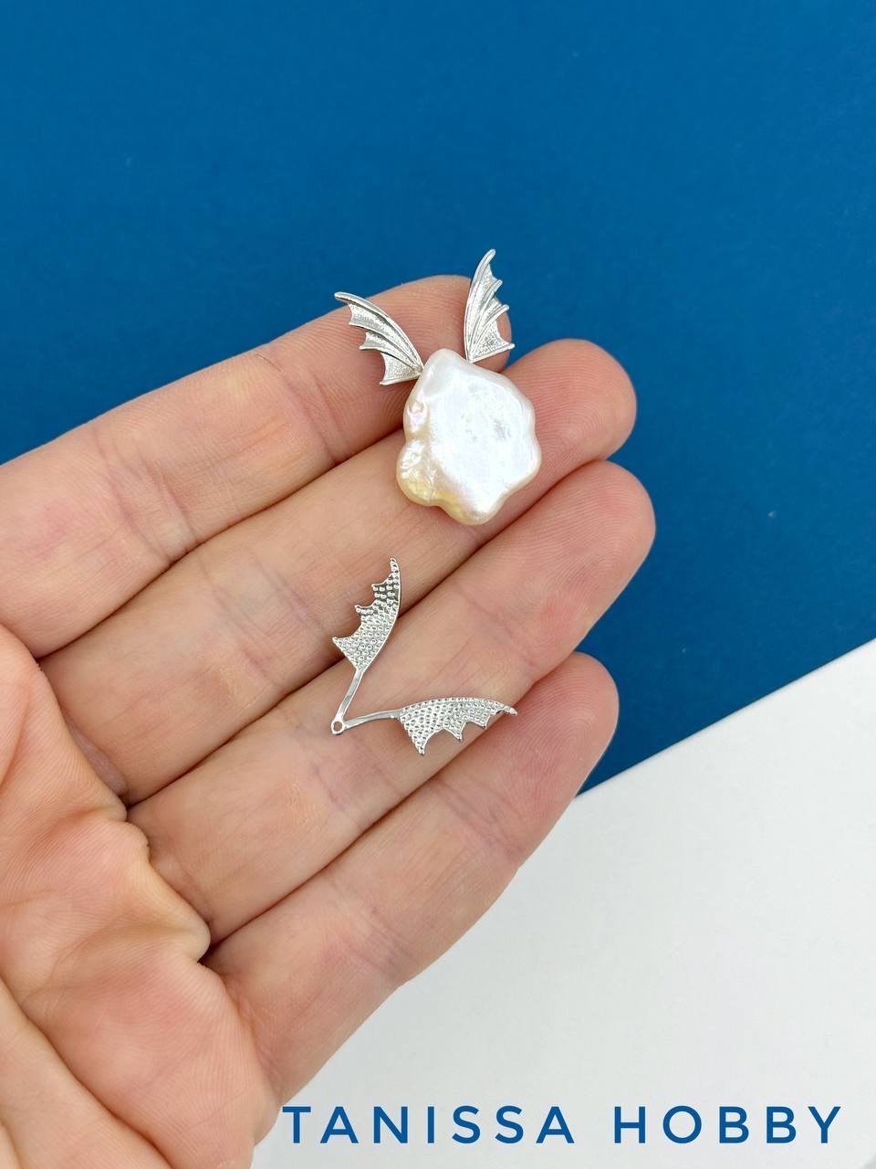• Крылья летучая мышь для вклейки, 13х6мм, родий, В318