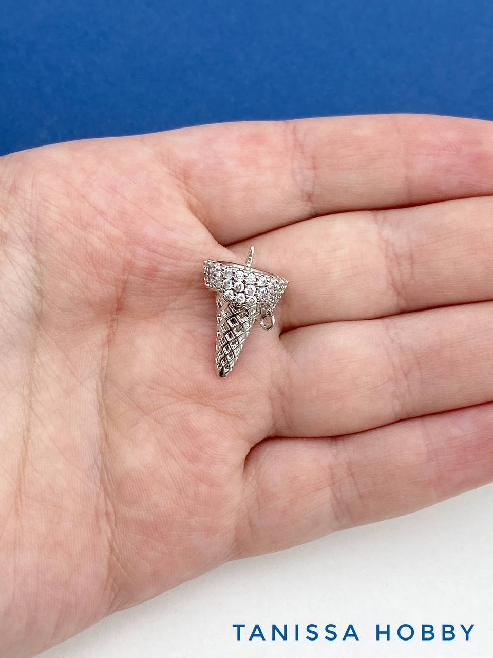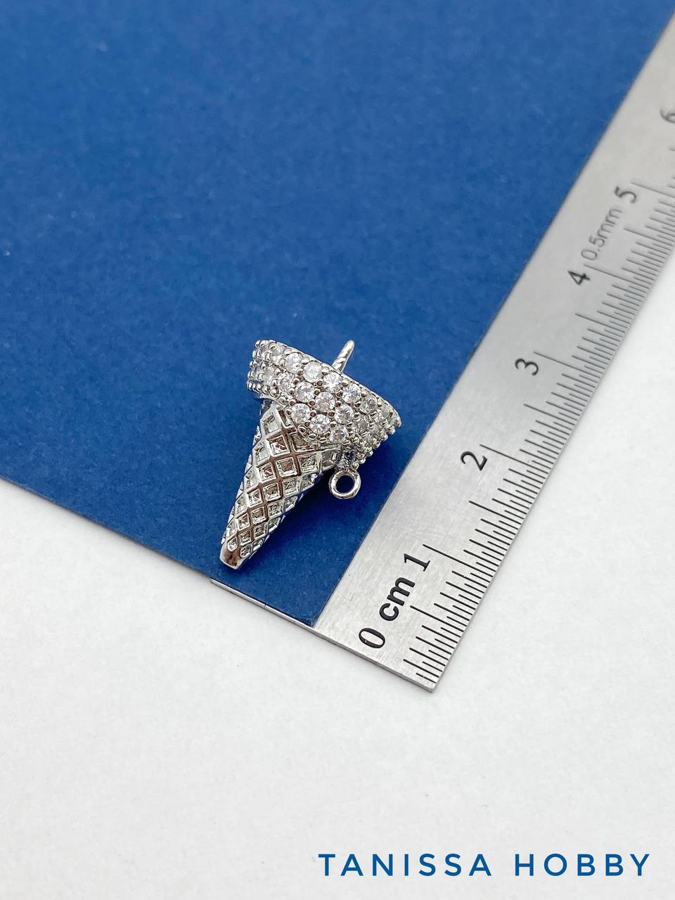 Подвеска мороженое рожок для вклейки, 21мм, родий, В404