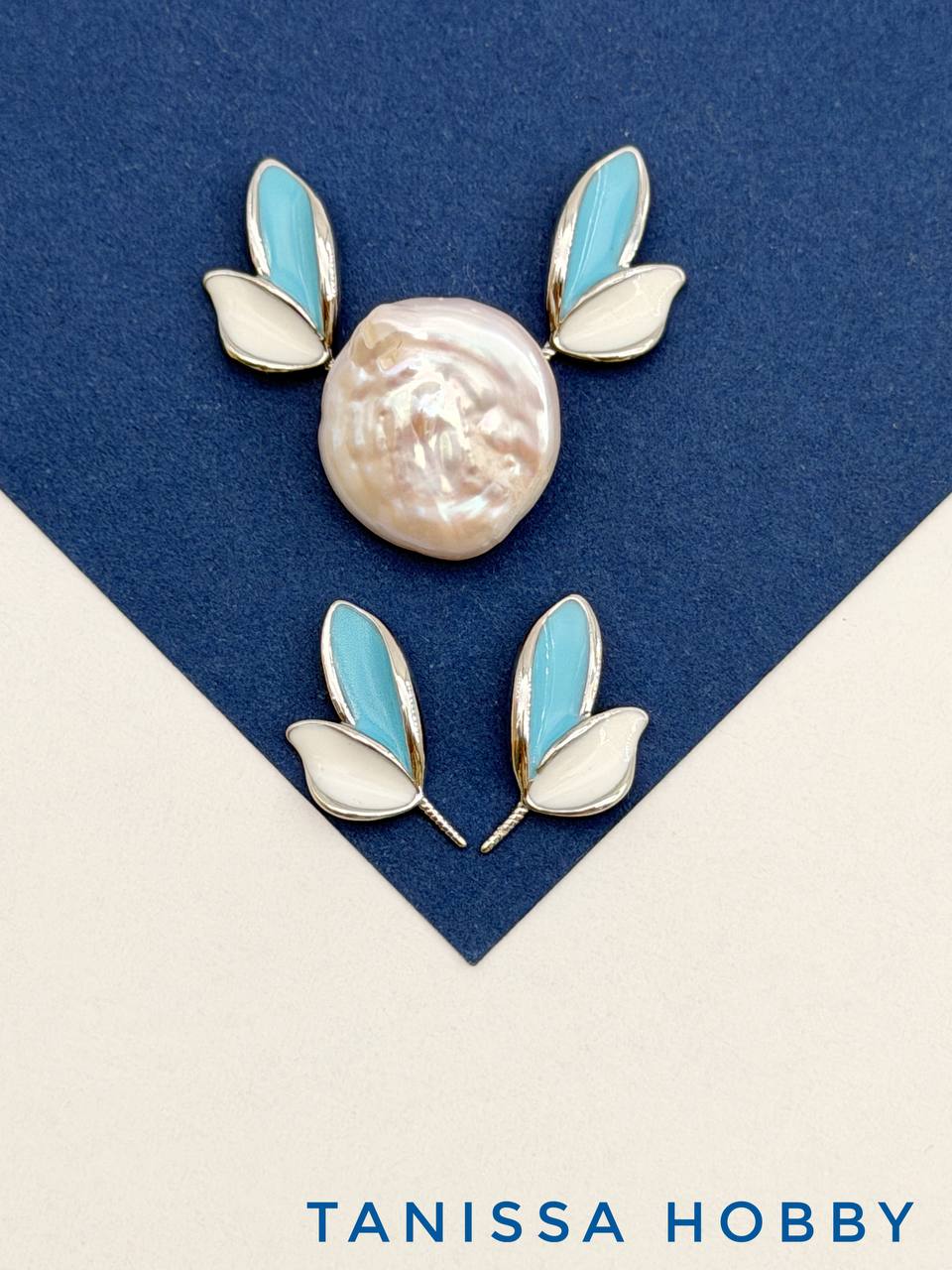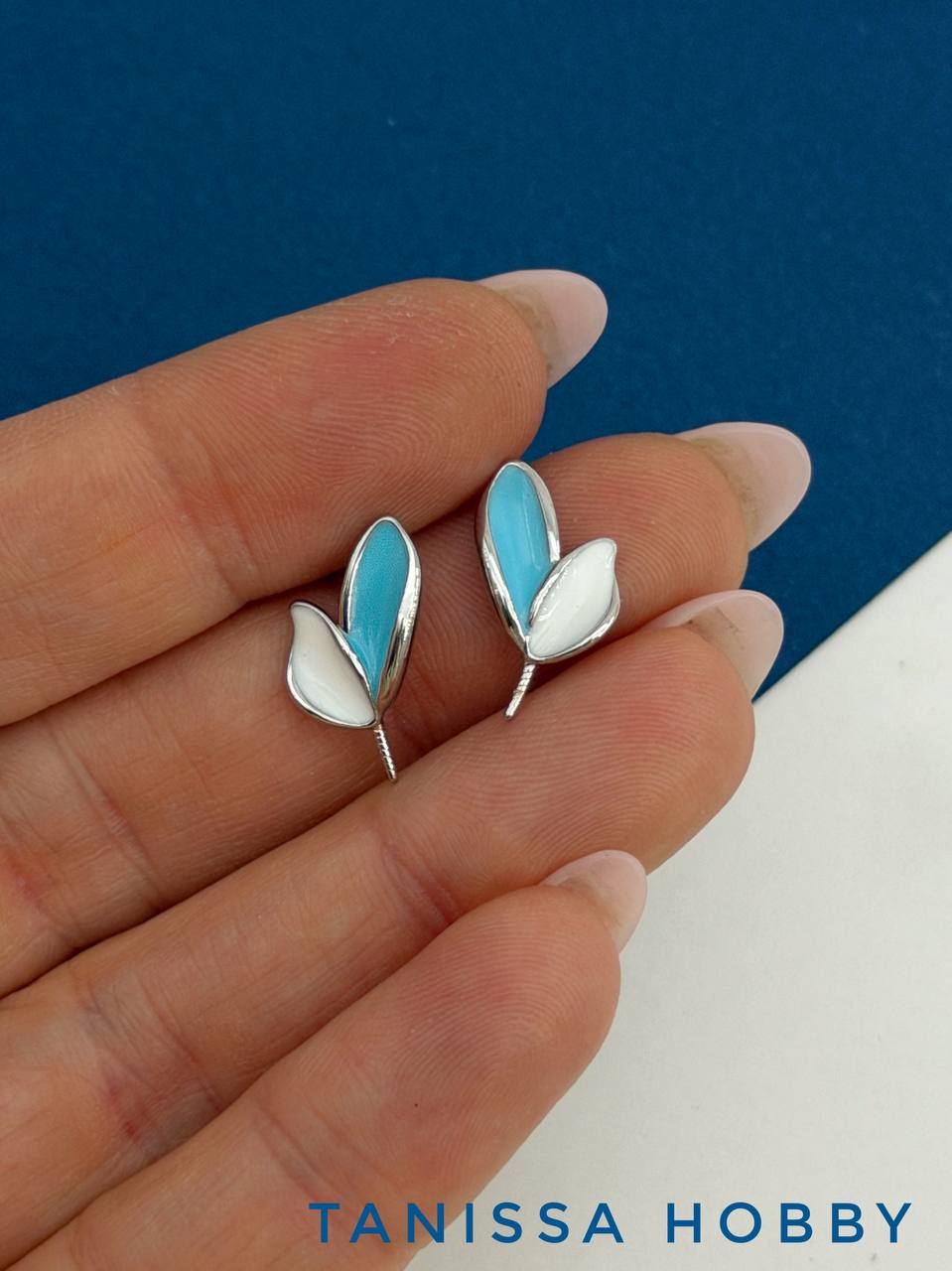 Крылья бабочки для вклейки, 13мм, голубая эмаль, ПАРА, родий, В506