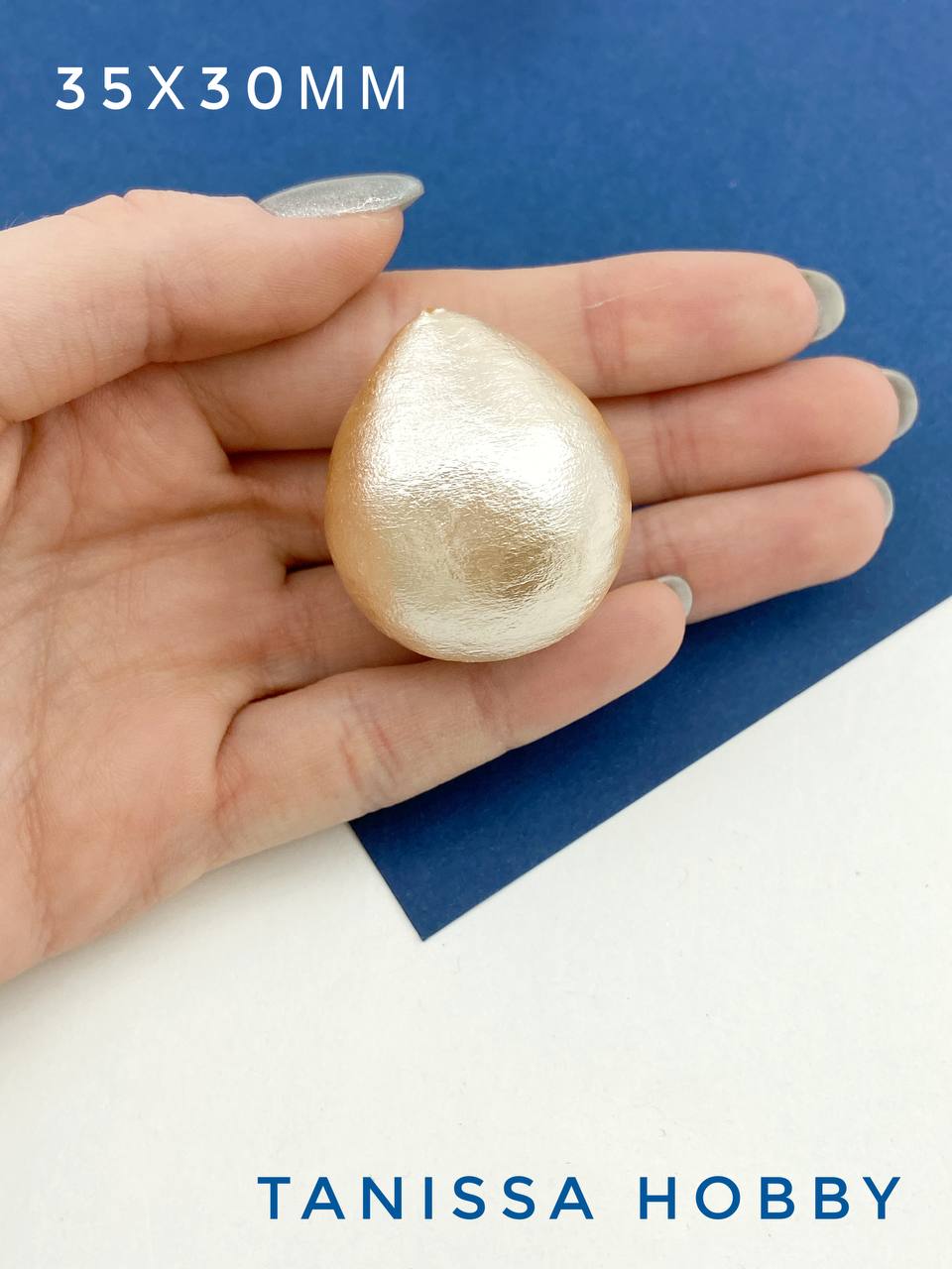 Хлопковый жемчуг, капля 35х30мм, бежевый, Япония, ЖХ71