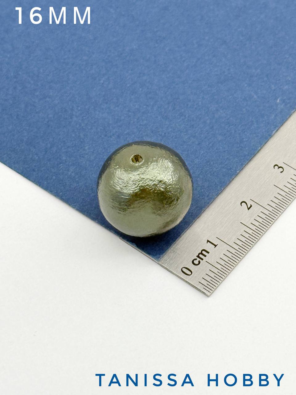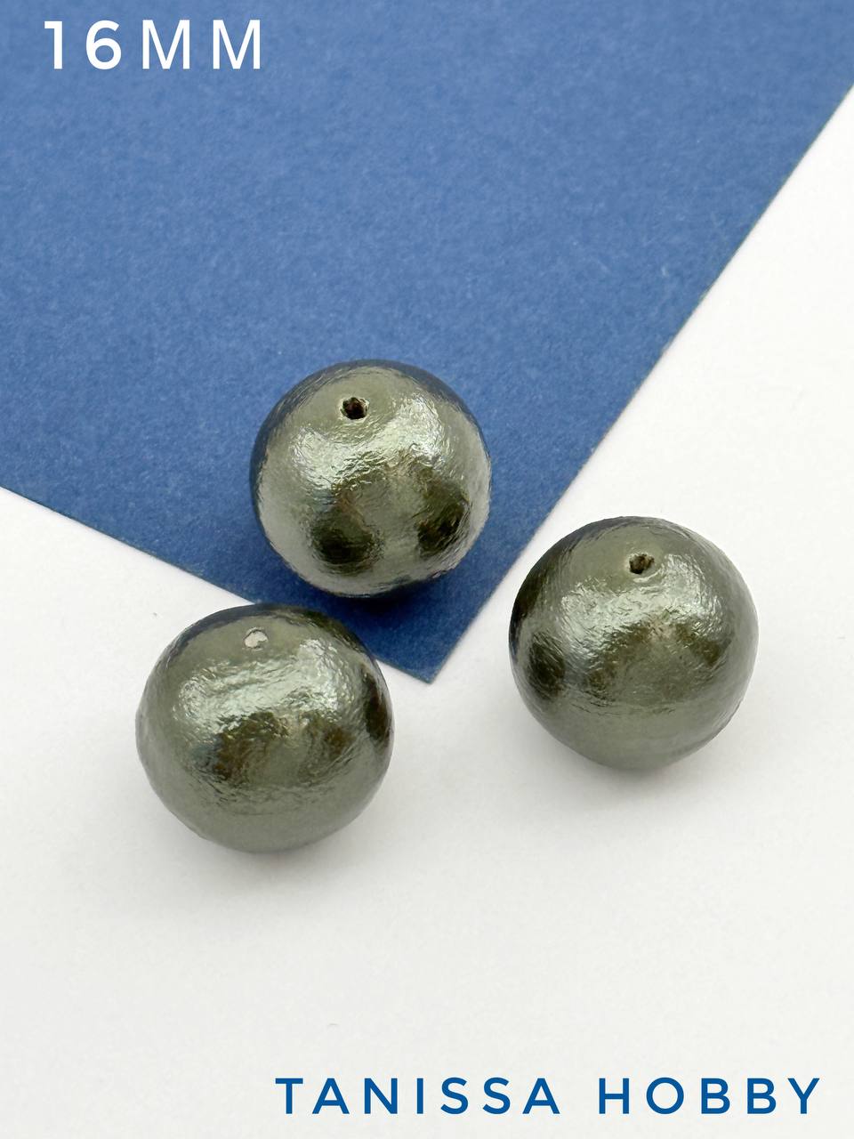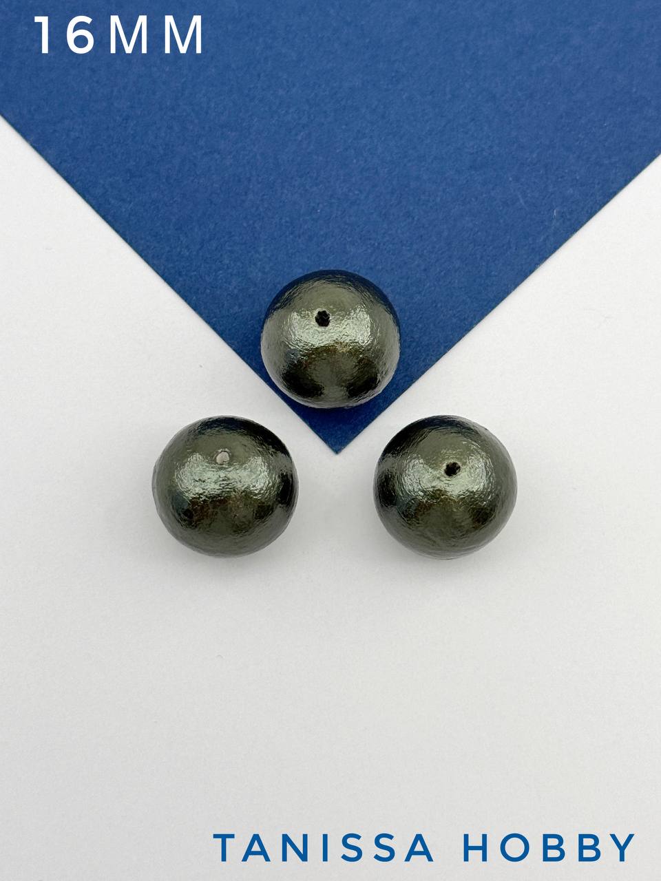 Хлопковый жемчуг 16мм, зеленый, Япония, ЖХ74