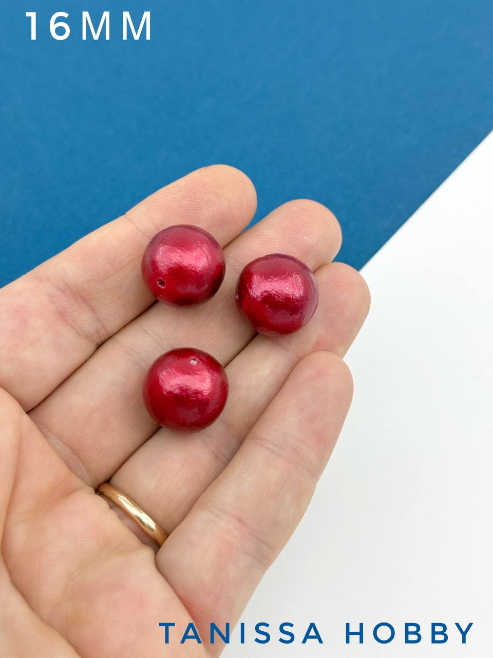 Хлопковый жемчуг 16мм, красный, Япония, ЖХ76