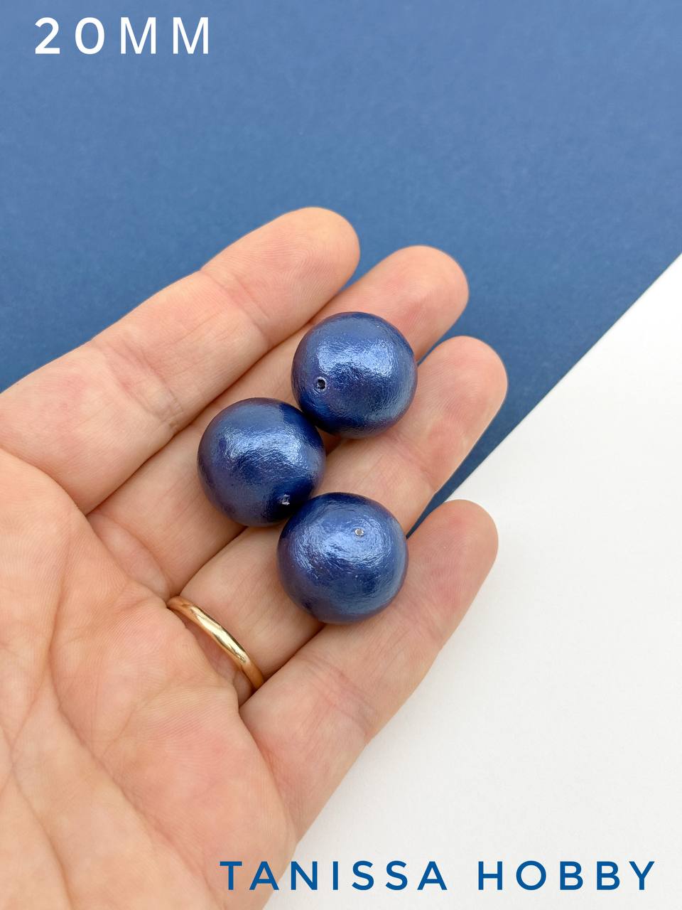 Хлопковый жемчуг 20мм, синий, Япония, ЖХ79