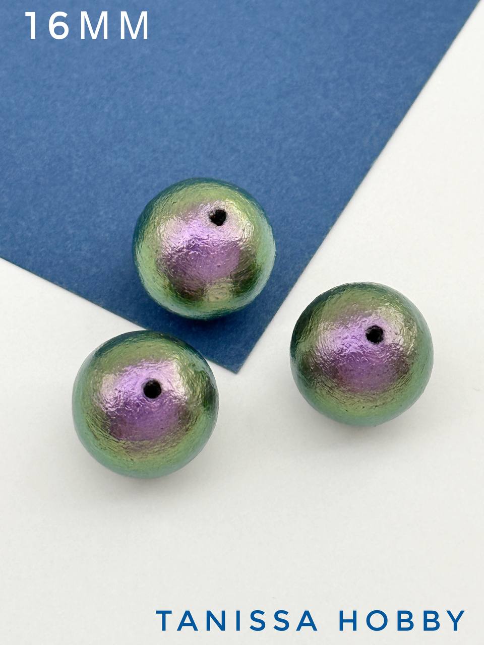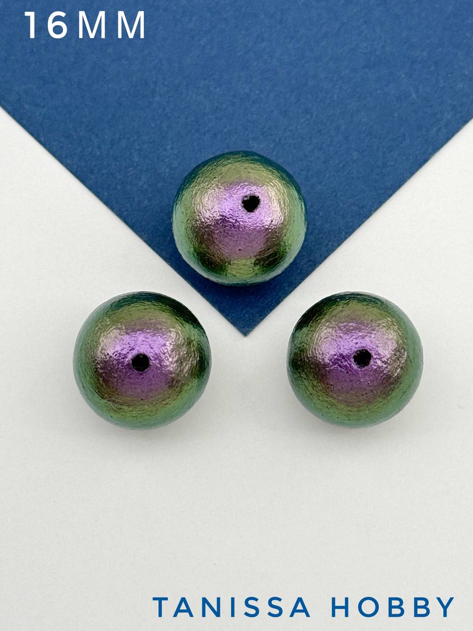 Хлопковый жемчуг 16мм, фиолетово-зеленый, Япония, ЖХ80