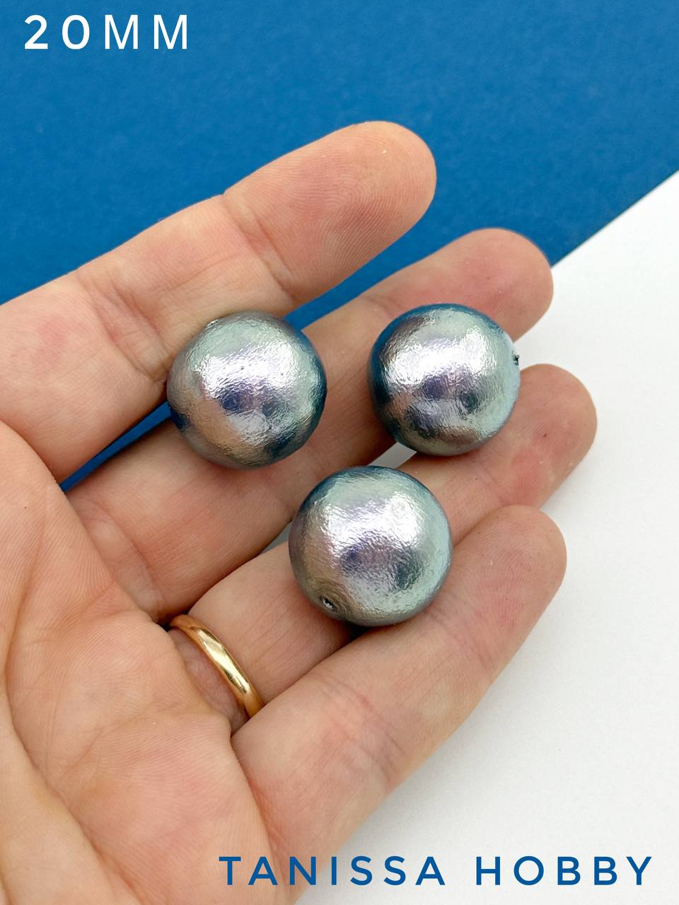 Хлопковый жемчуг 20мм, сизый, Япония, ЖХ89