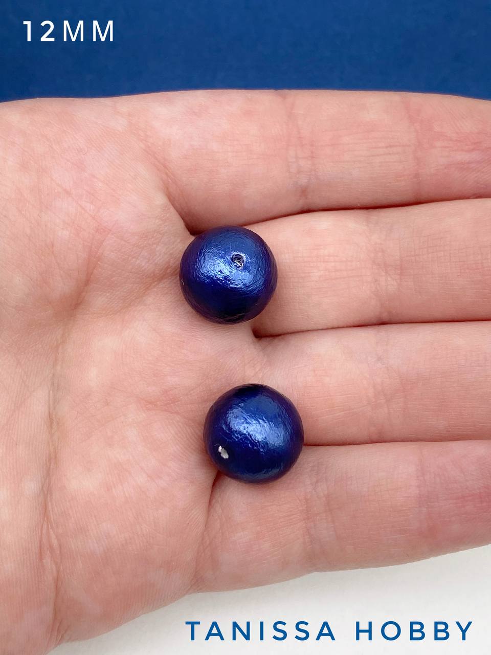 Хлопковый жемчуг 12мм, синий, Япония, ЖХ101