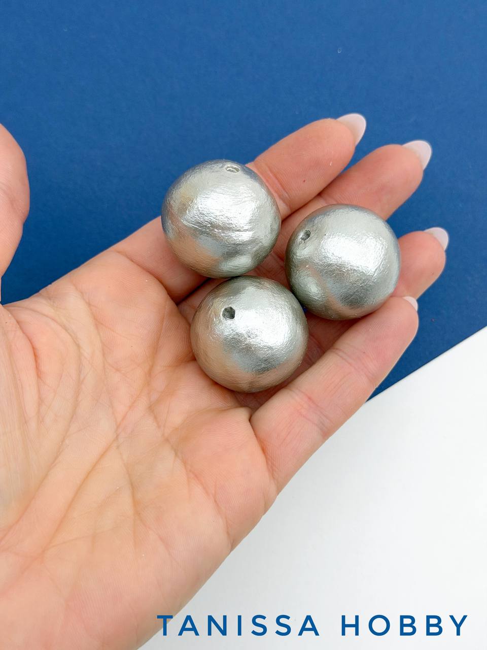 Хлопковый жемчуг 30мм, серый, серебро, Япония, ЖХ22