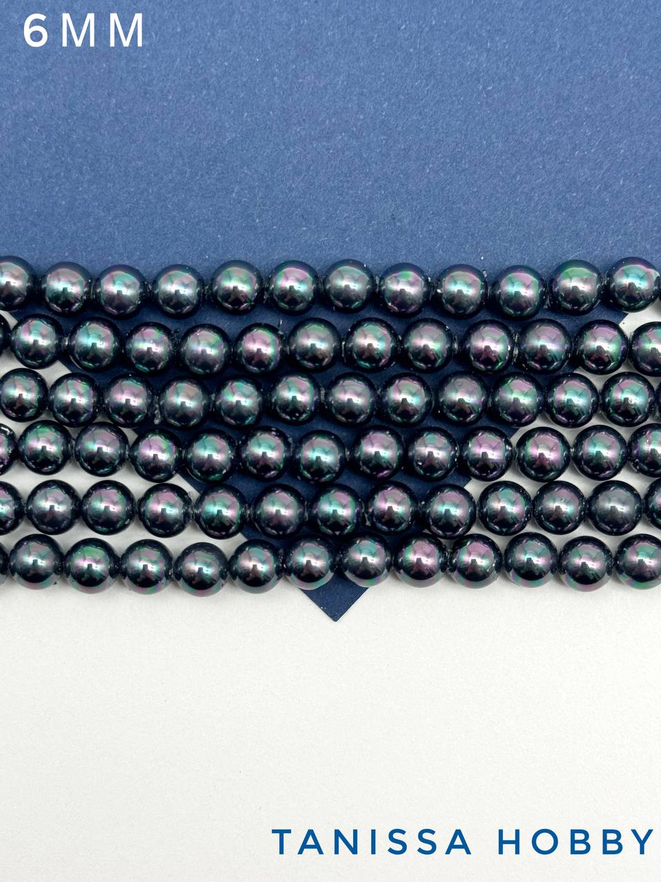 Жемчуг Майорка, круглый, черный радужный, 6мм, нить, МА018