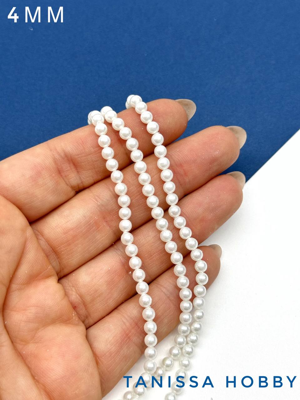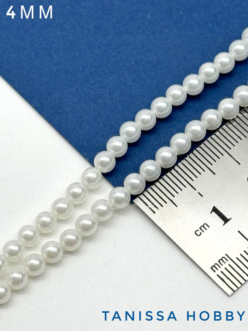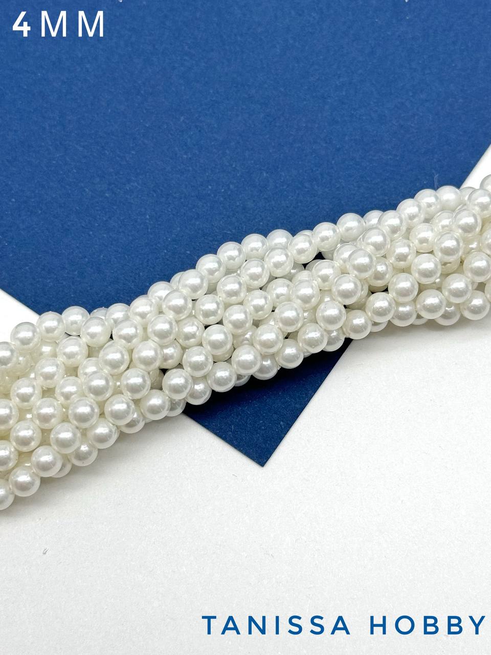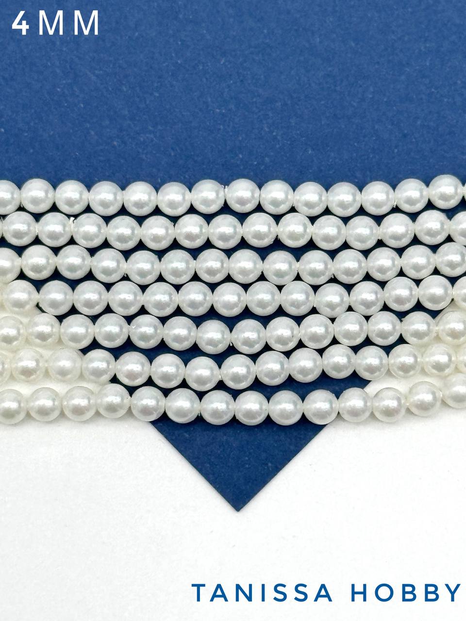 -Жемчуг Майорка, круглый, белый радужный, 4мм, нить, МА021