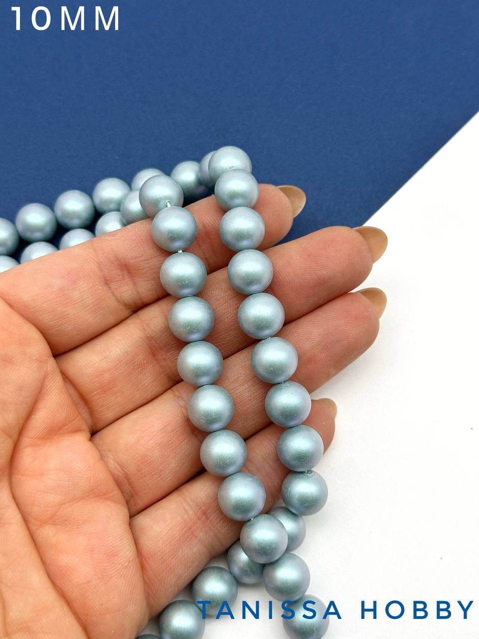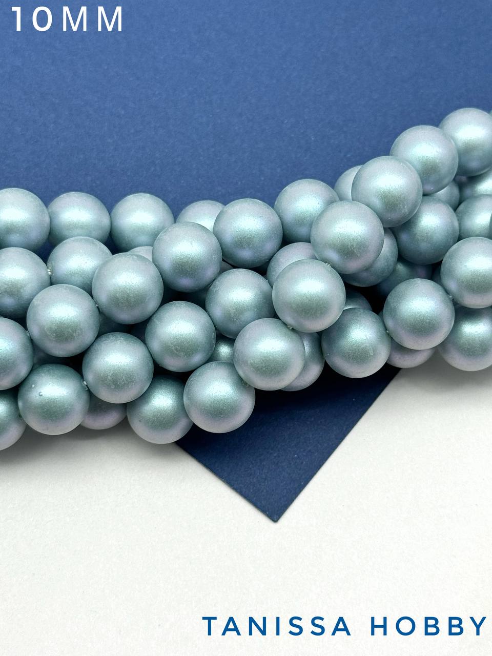 Жемчуг Майорка, голубой, Iridescent Light Blue, 10мм, нить, МА040
