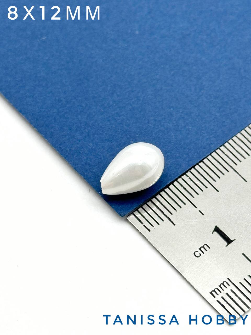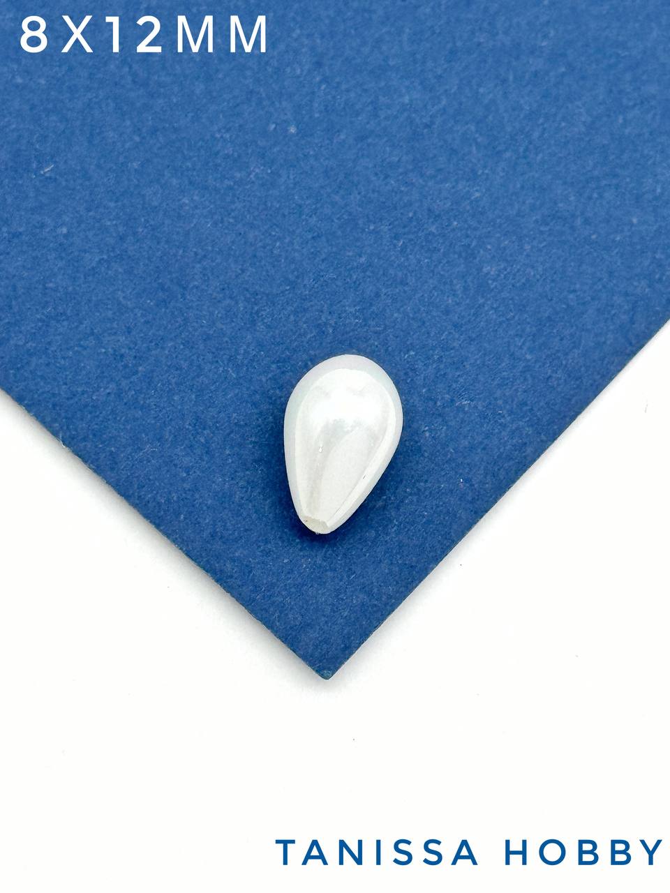 Жемчуг Майорка, полупросверленный, капля, белый, 8х12мм, МА050