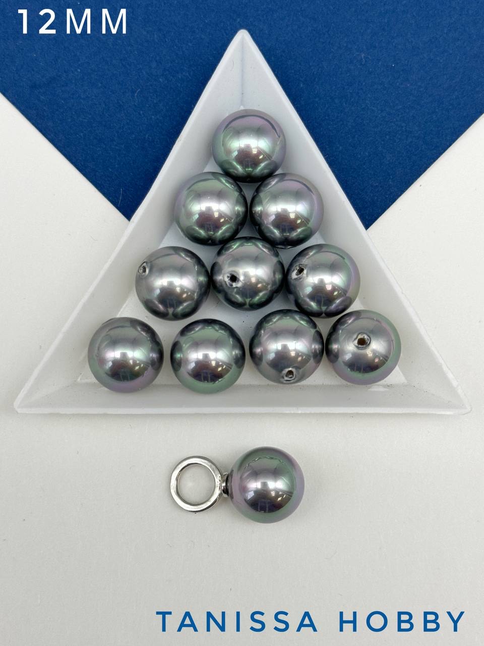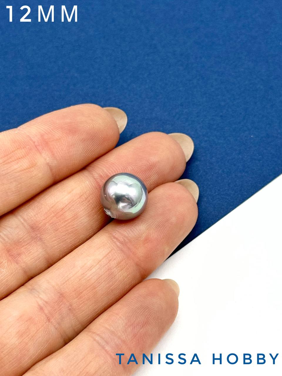 Жемчуг Майорка, полупросверленный, круглый, серый, 12мм, МА058