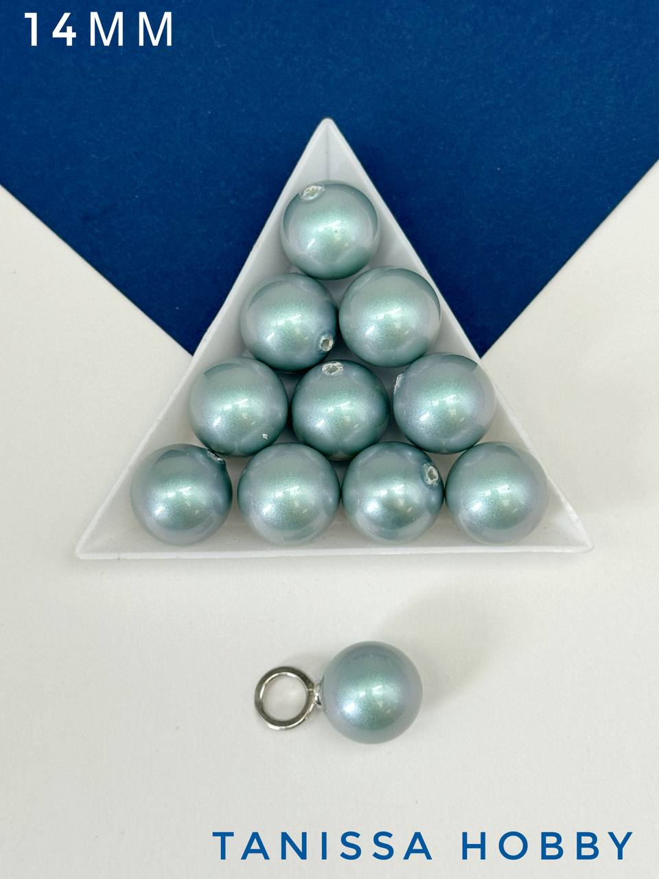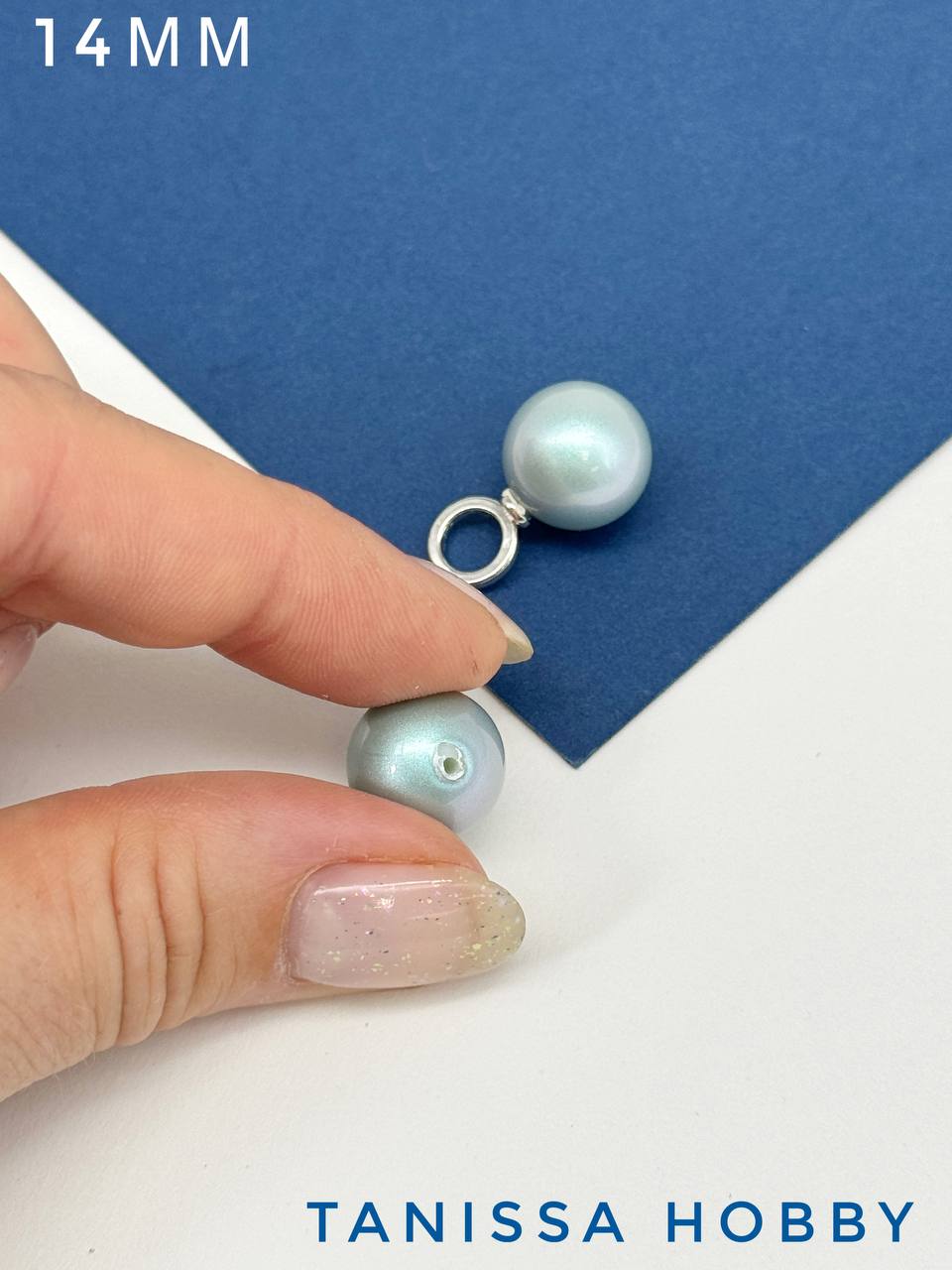 Жемчуг Майорка, полупросверленный, круглый, голубой, 14мм, МА138