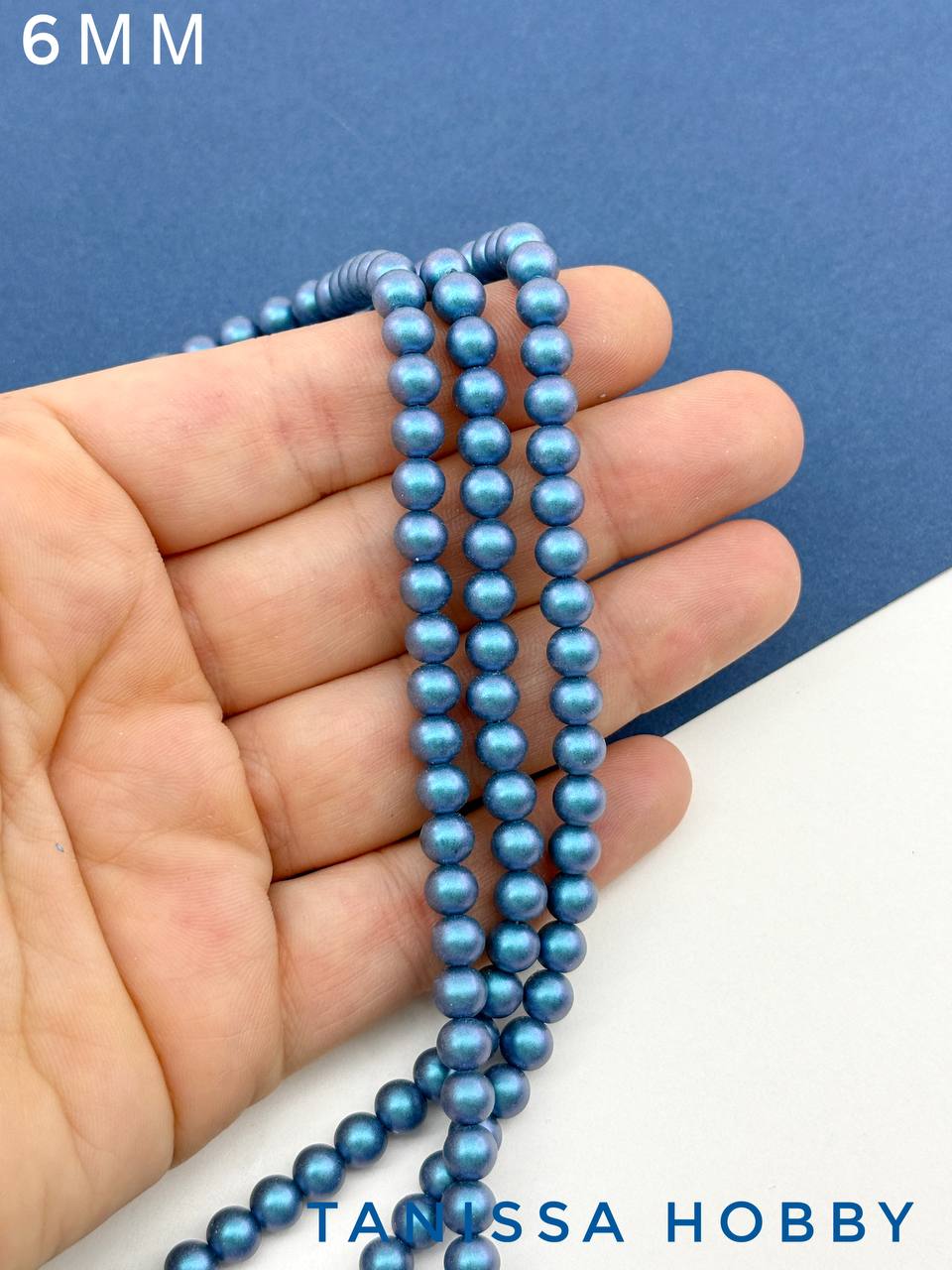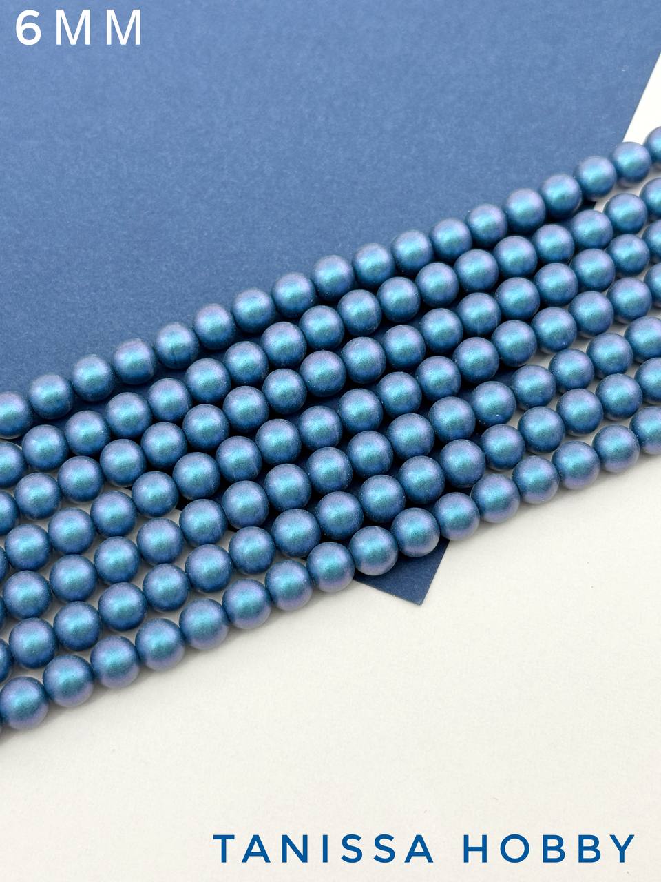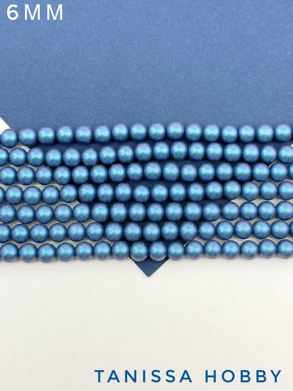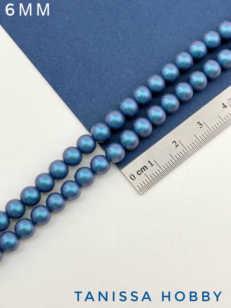 Жемчуг Майорка, синий, Iridescent Matte Blue, 6мм, нить, МА082