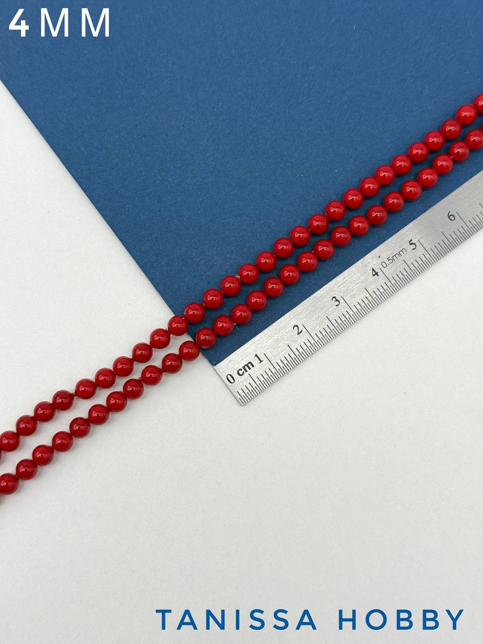 Жемчуг Майорка, круглый, красный, 4мм, нить, МА092