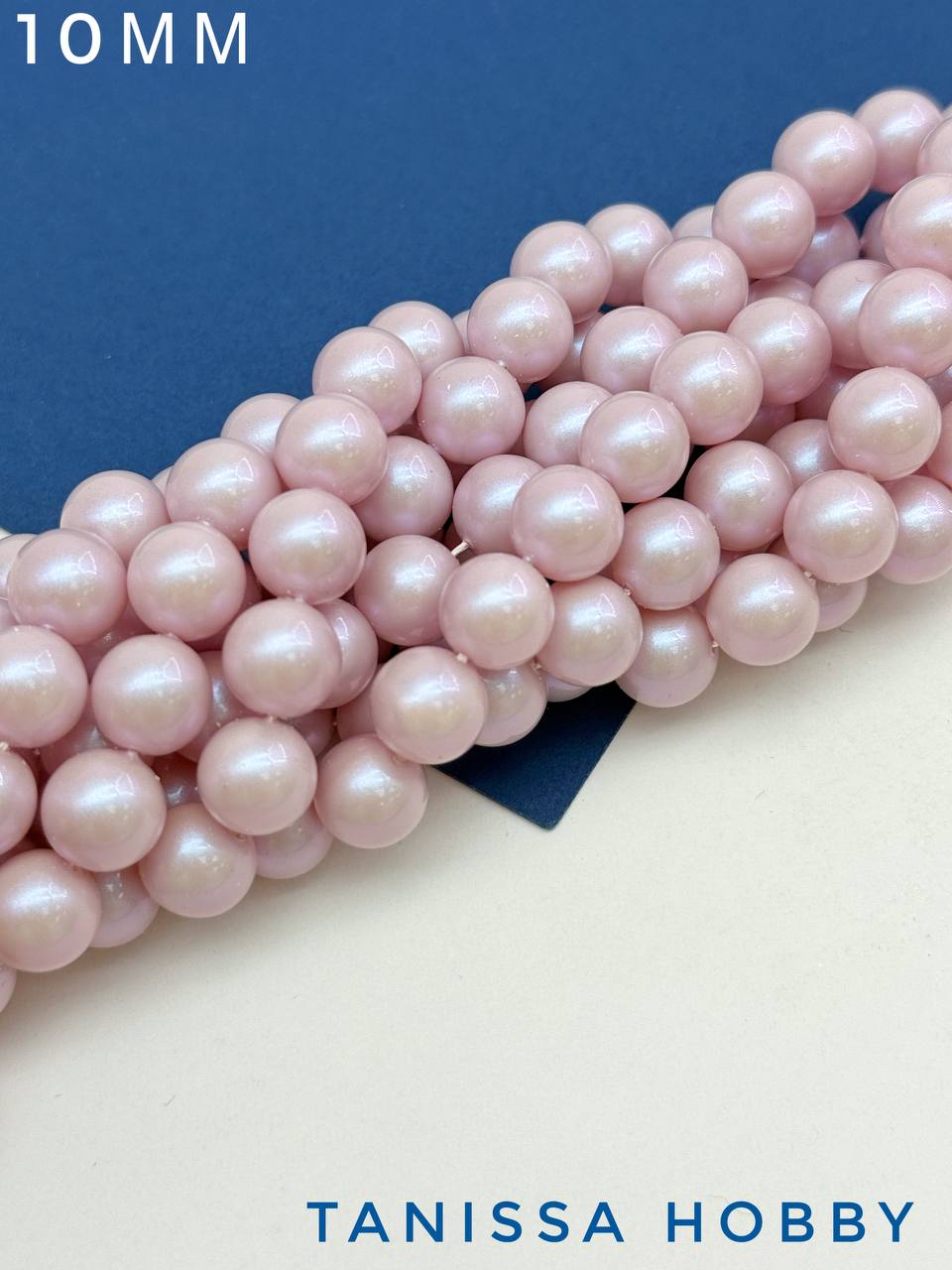 Жемчуг Майорка, сиреневый розовый, Iridescent Light Rose, 10мм, нить, МА108