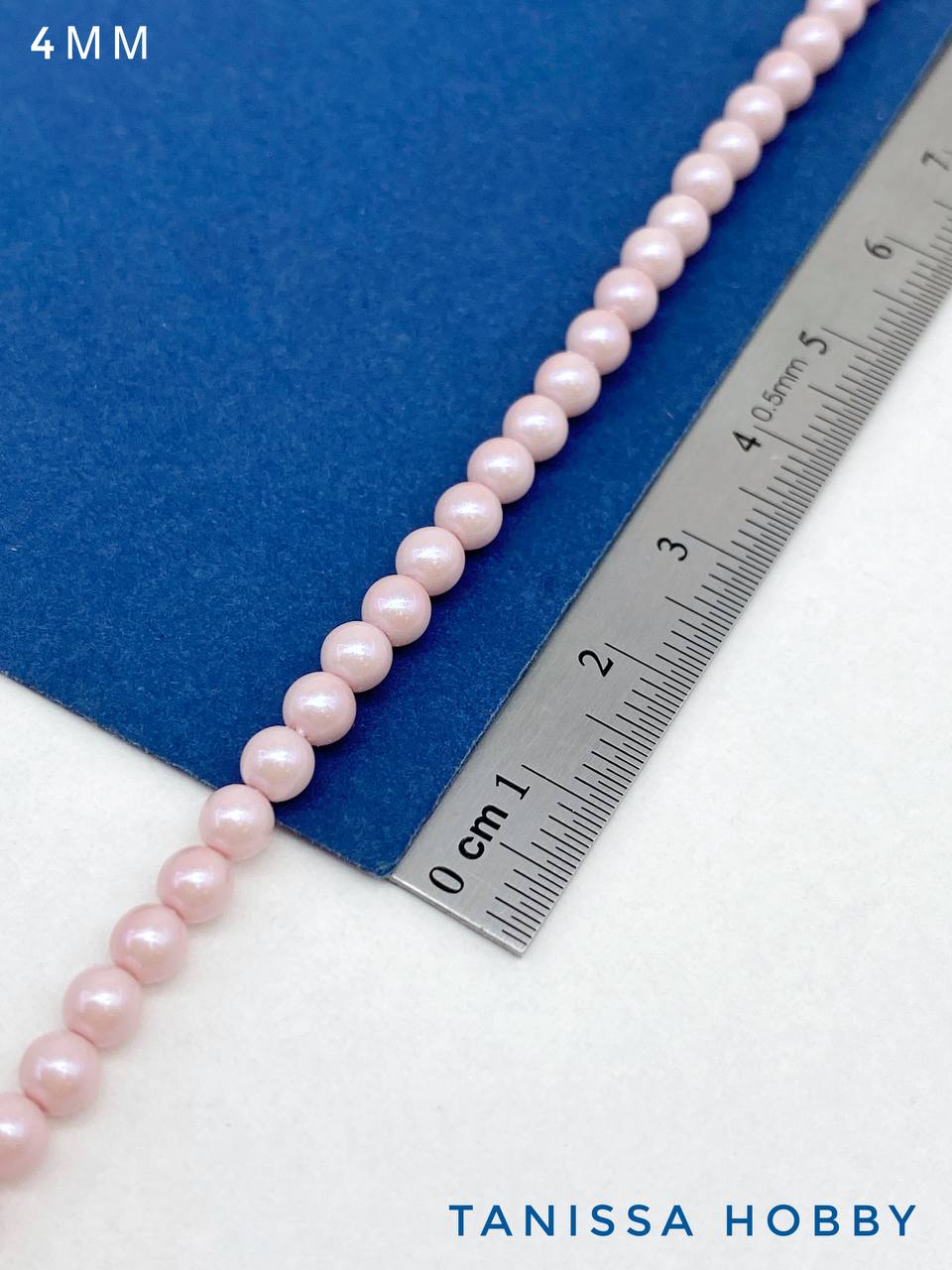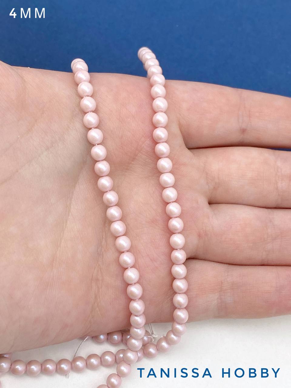 Жемчуг Майорка, розовый, Iridescent Powder Rose, 4мм, нить, МА184