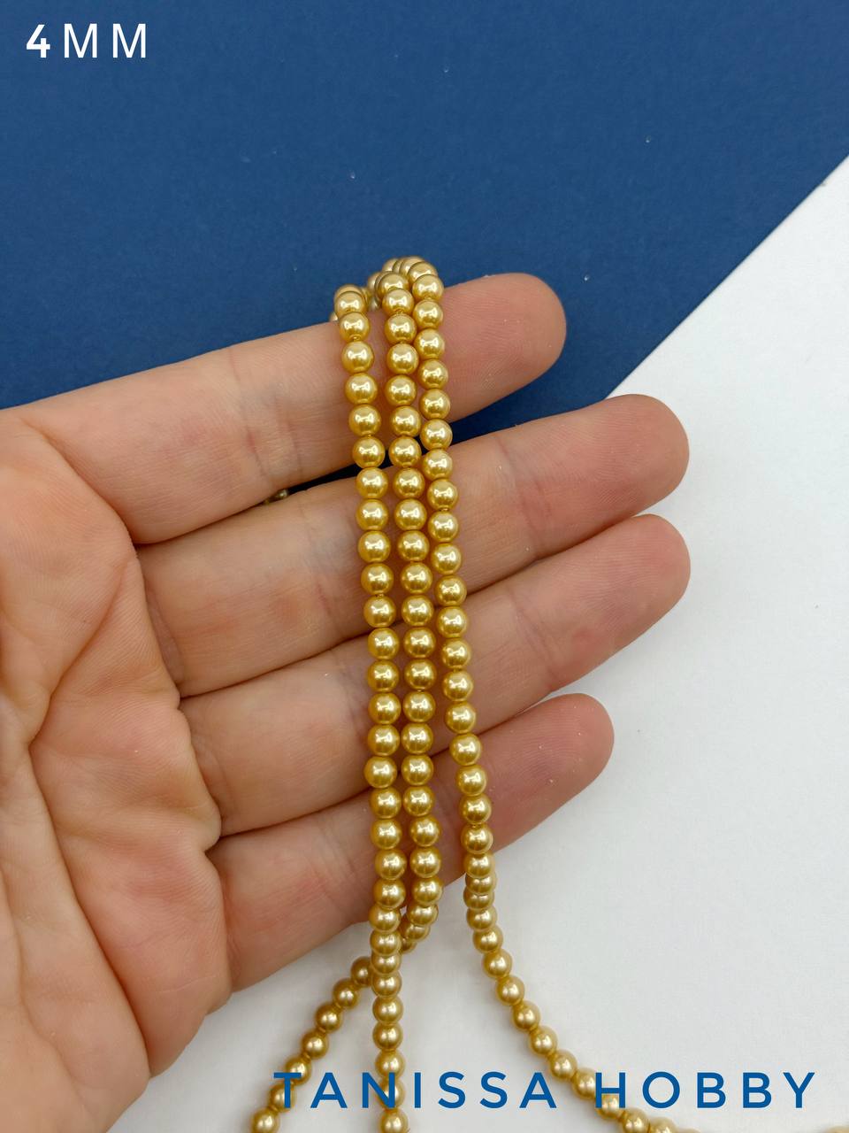Жемчуг Майорка, золото, Gold, 4мм, нить, МА224
