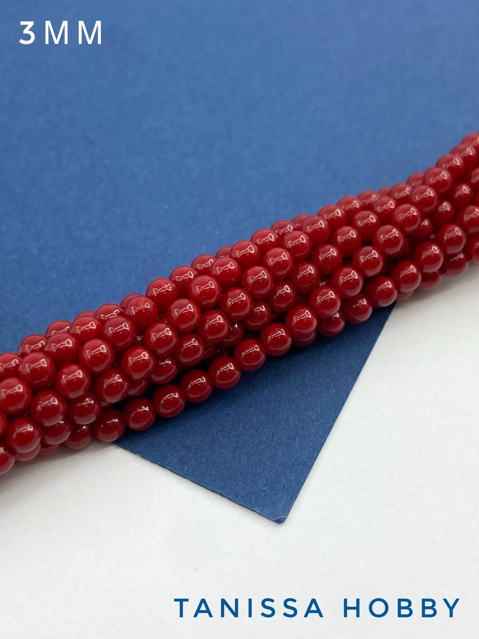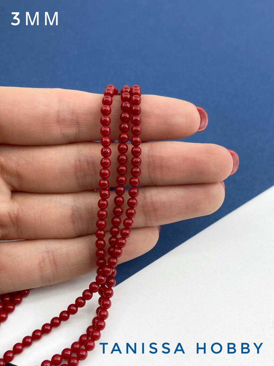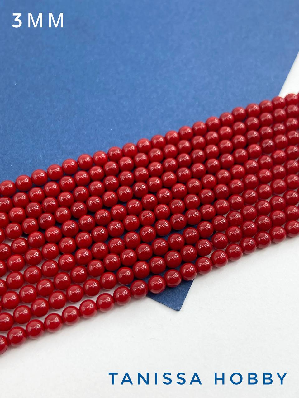 -Жемчуг Майорка, круглый, 3мм, красный, нить, МА245