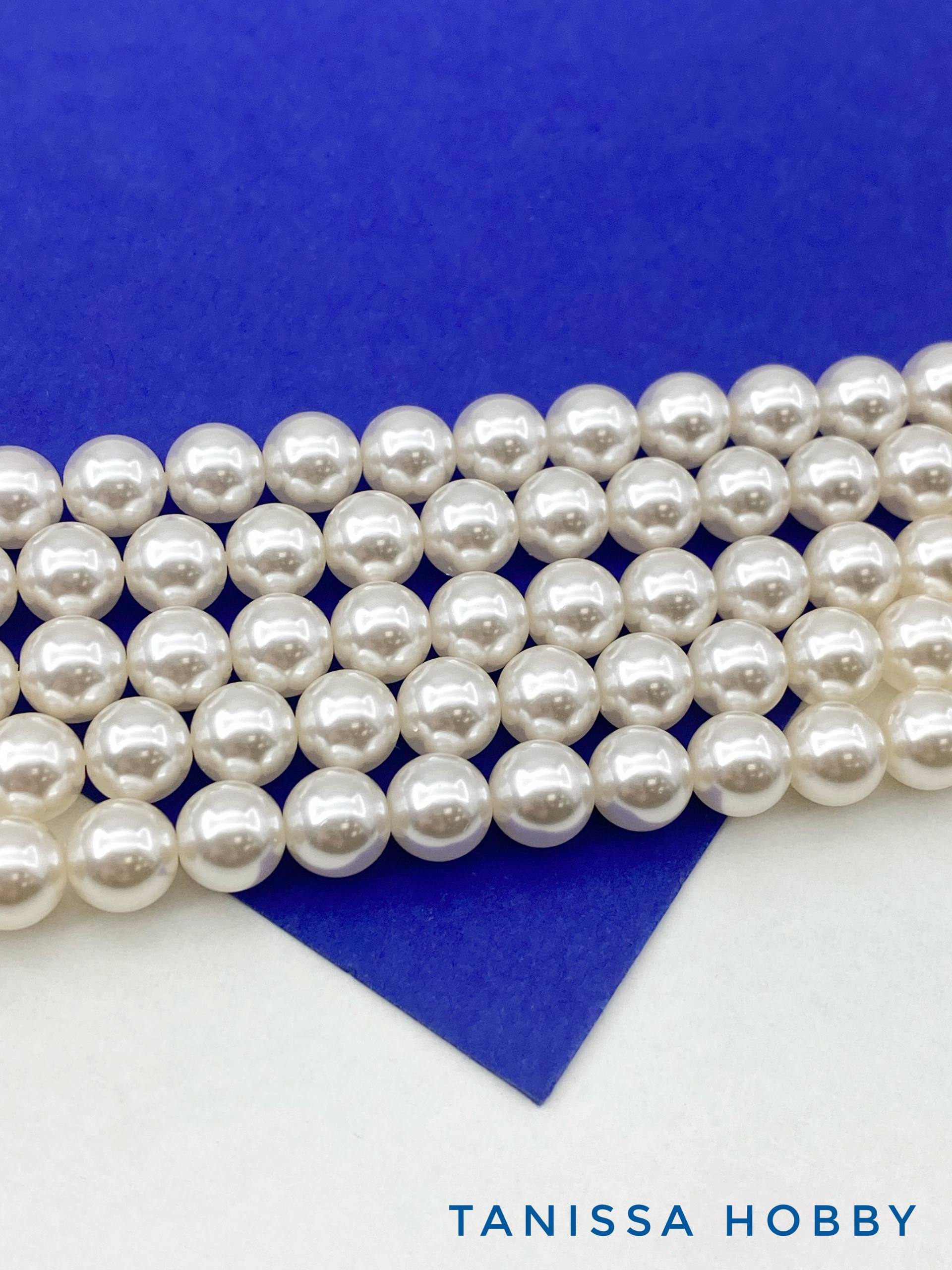 • Жемчуг Майорка, белый, Iridescent White, 8мм, нить, МА027