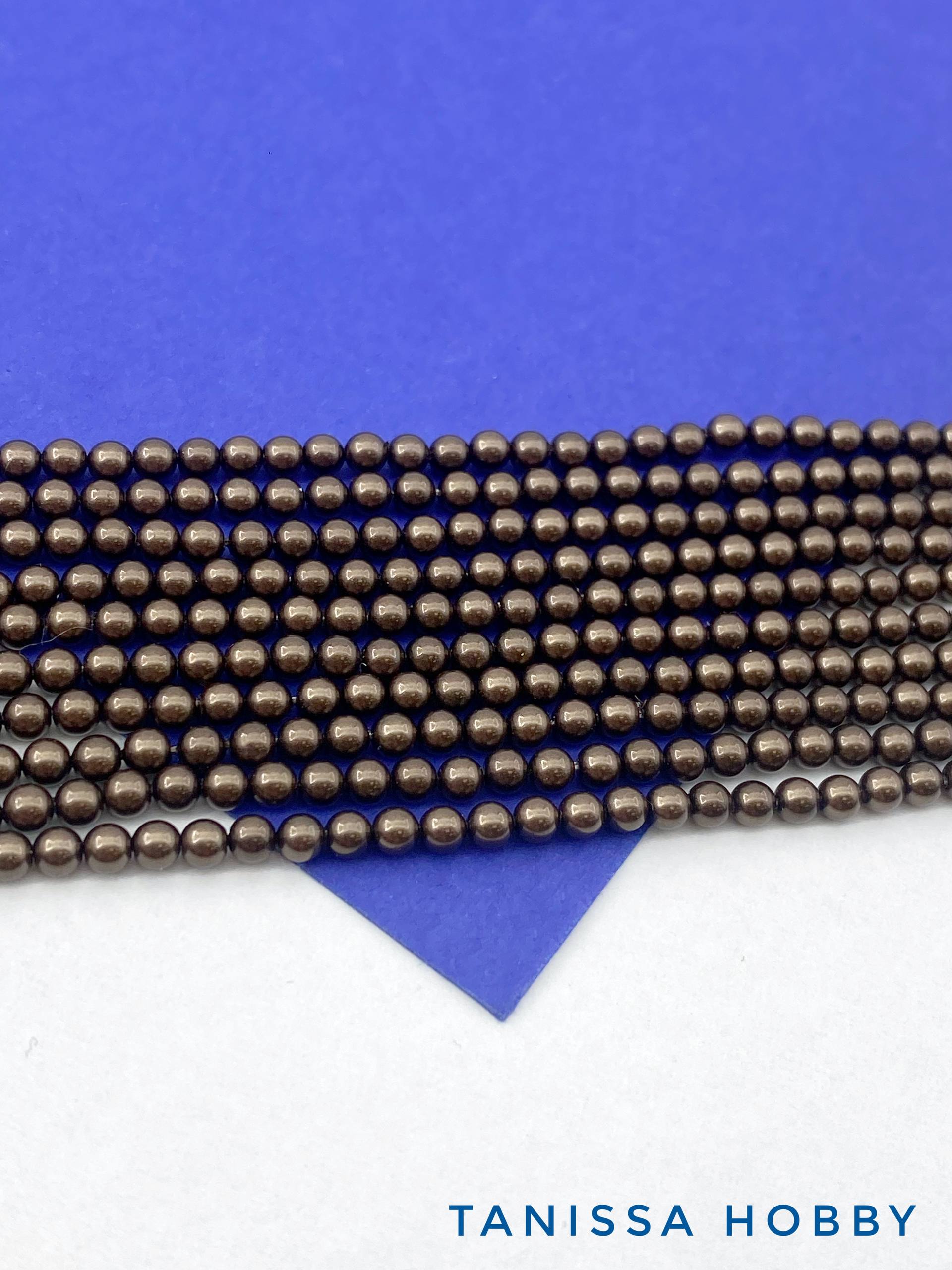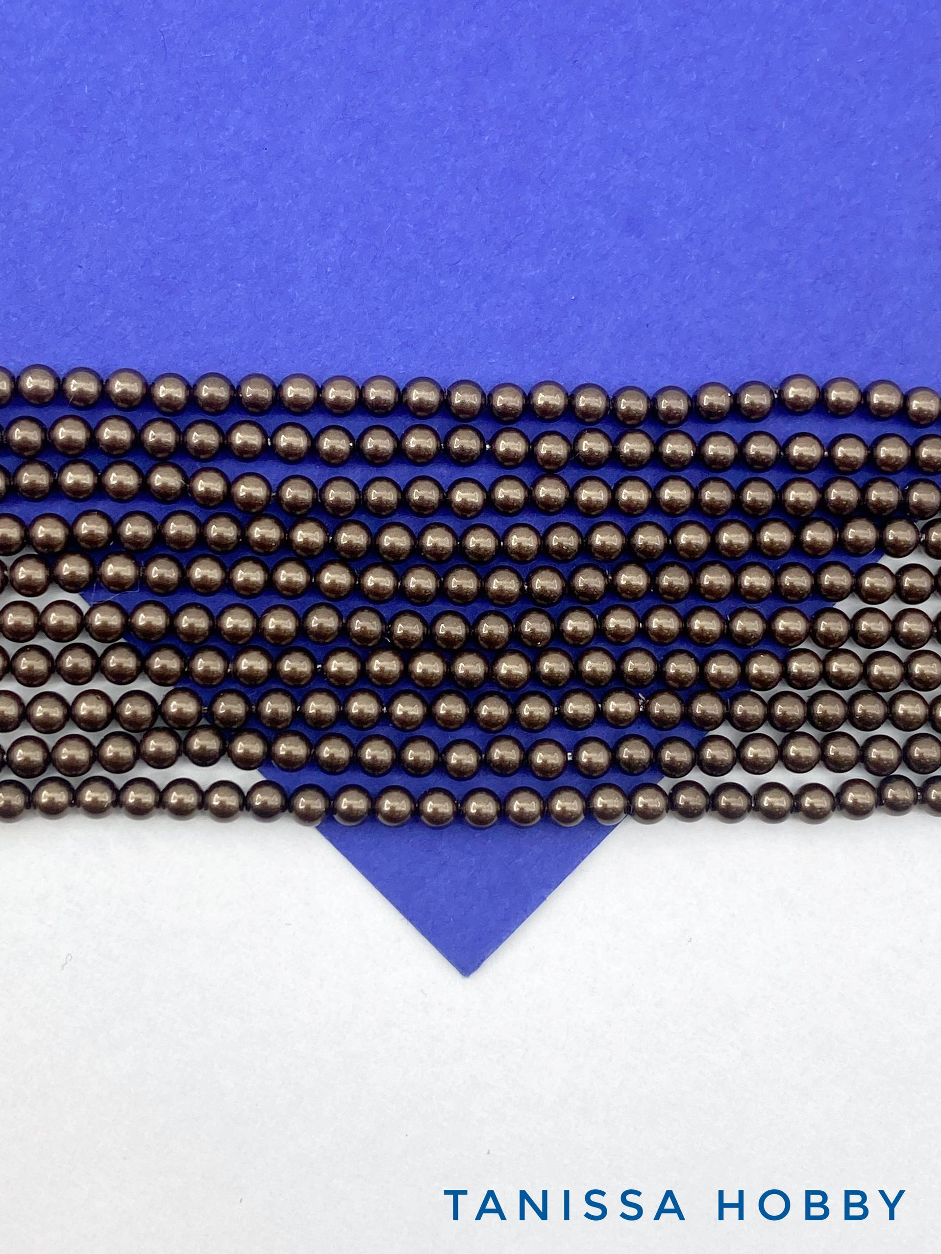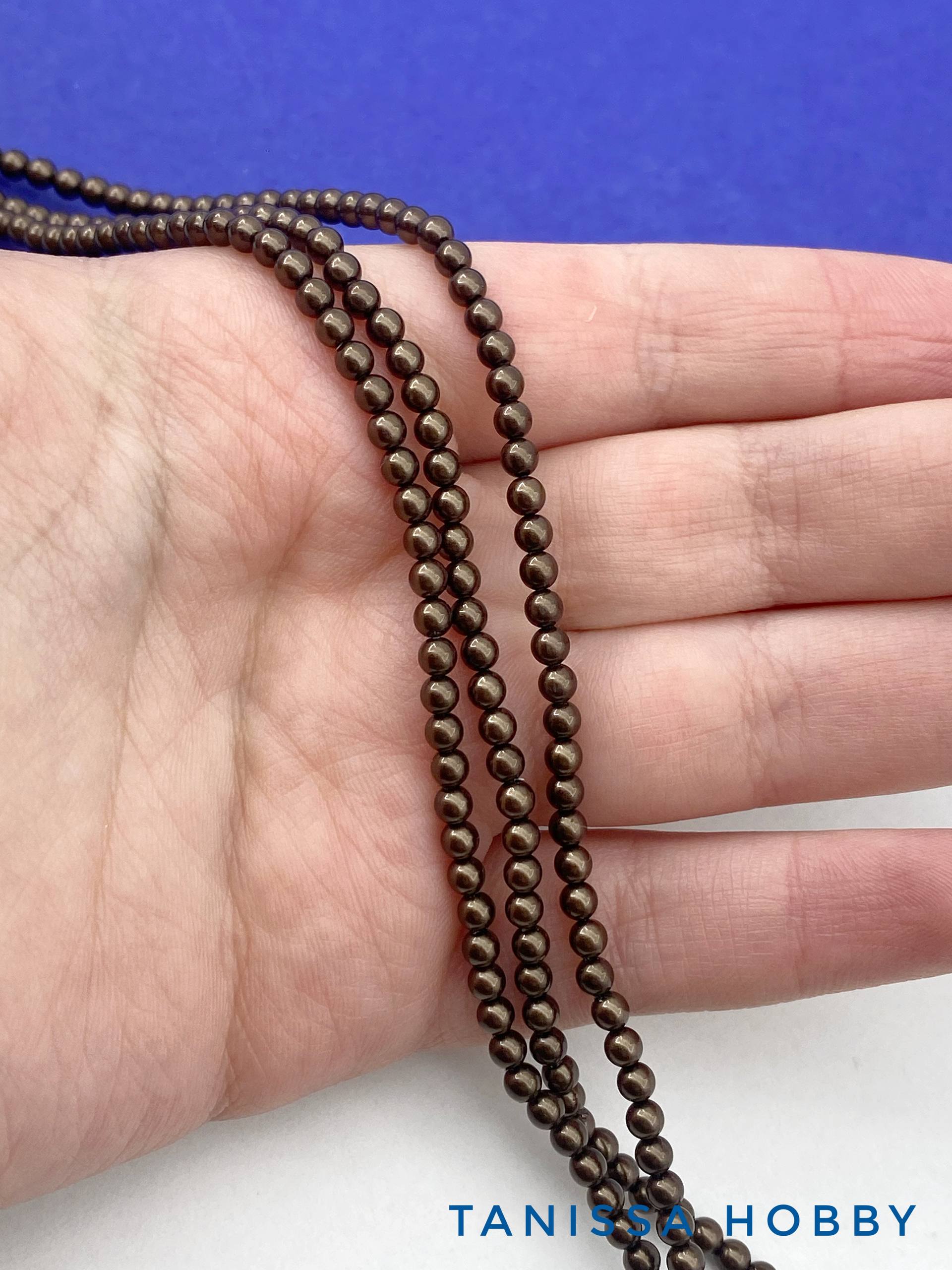 -Жемчуг Майорка, круглый, 3мм, шоколадный, Chocolate, нить, МА264