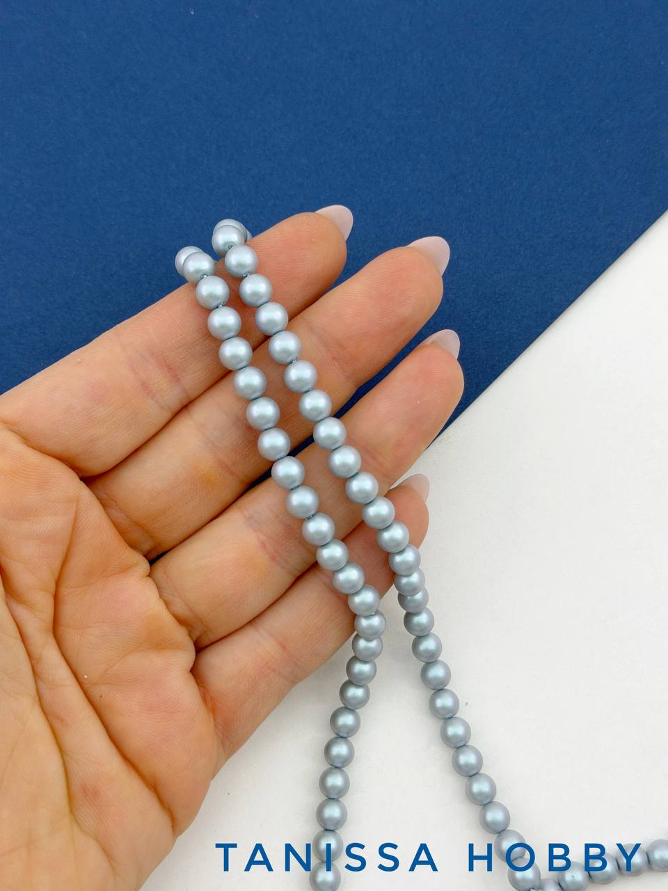 -Жемчуг Майорка, серо-голубой, 6мм, нить, МА285