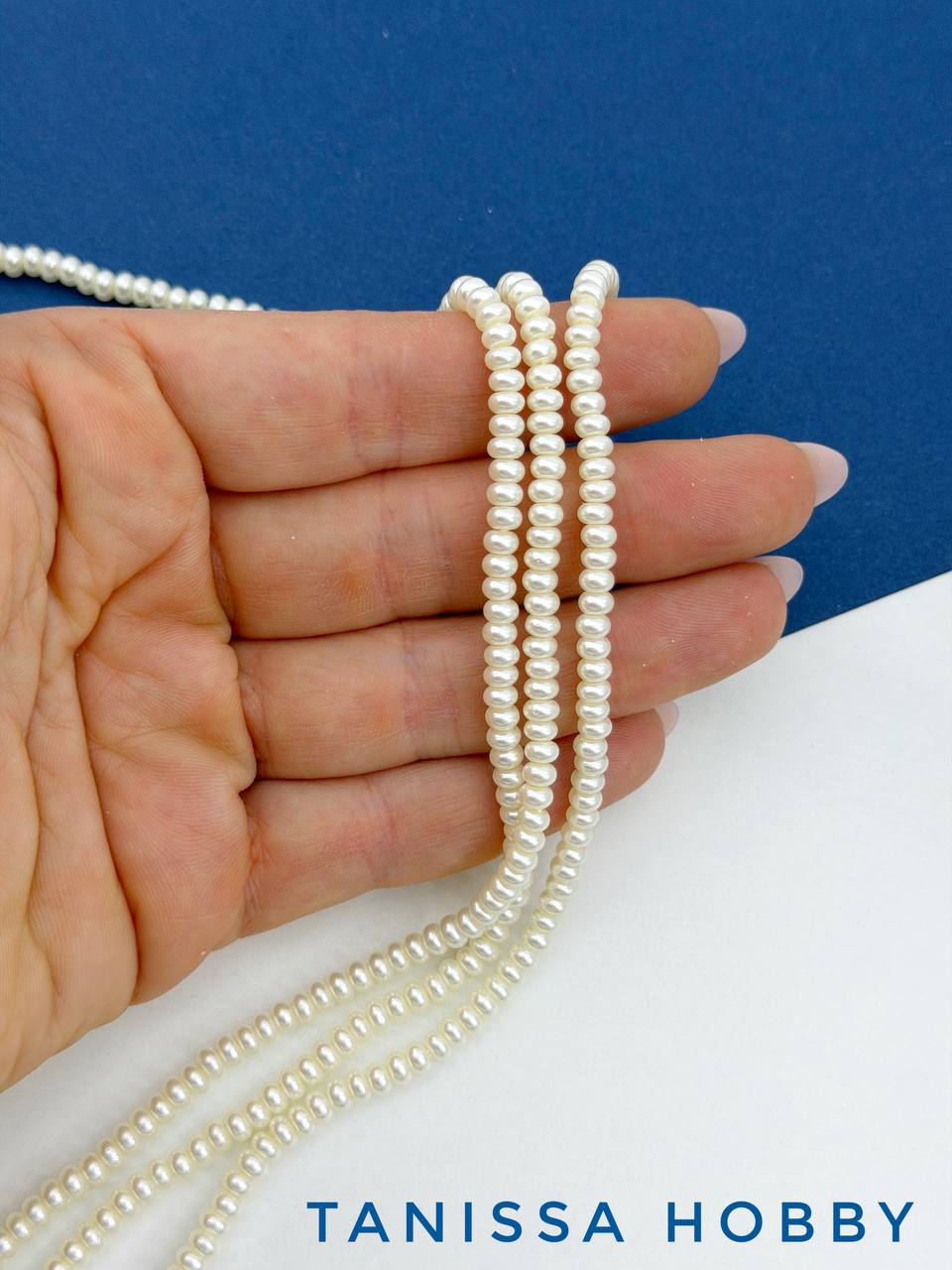 -Жемчуг Майорка, кукуруза, айвори, 3х4мм, нить, МА289