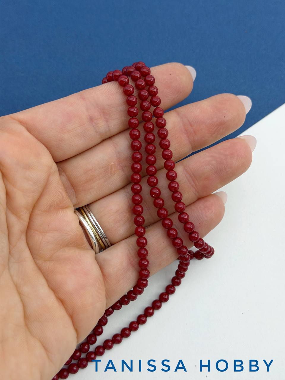 -Жемчуг Майорка, круглый, красный вишневый, 4мм, нить, МА303
