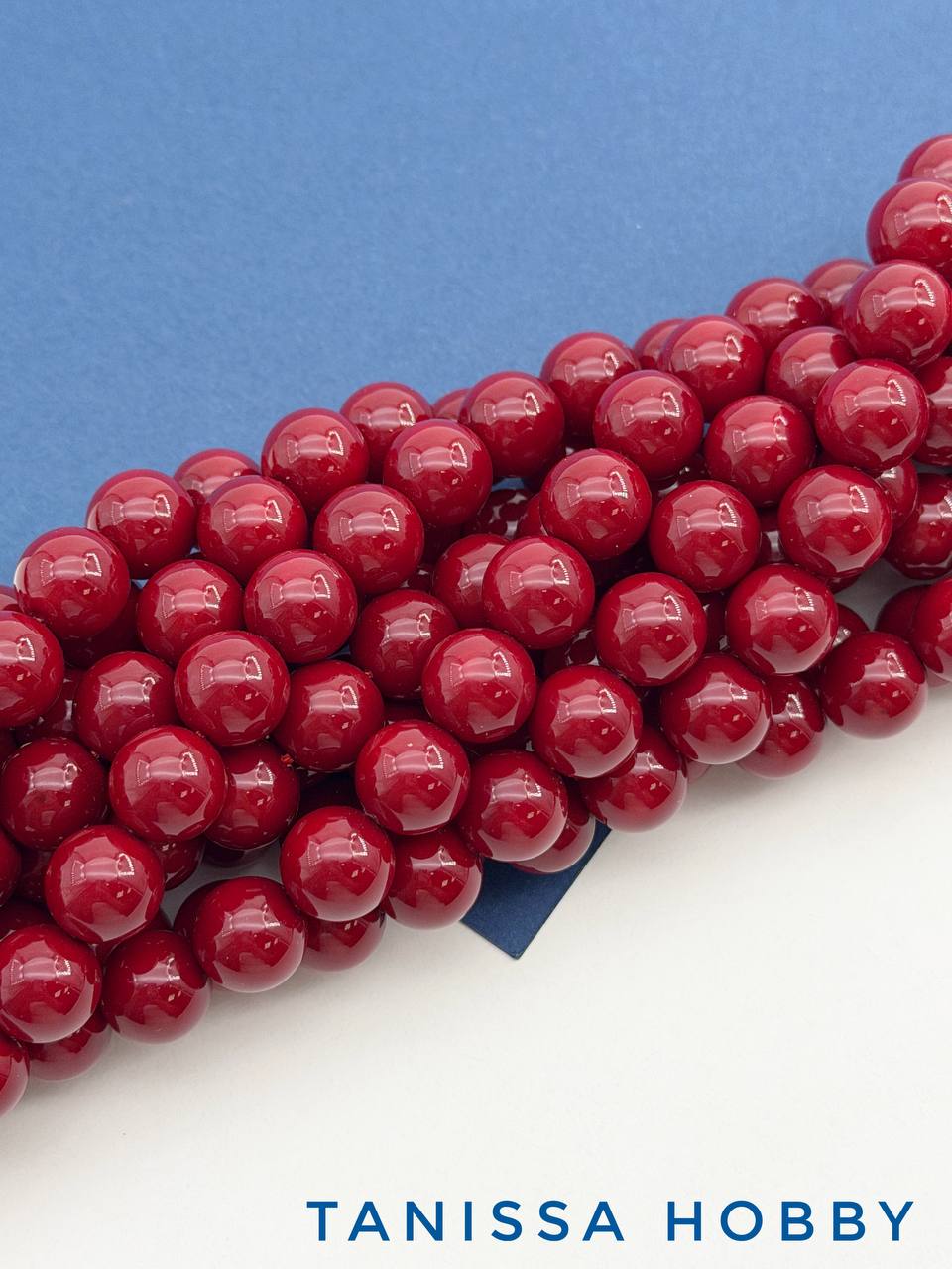 -Жемчуг Майорка, круглый, красный вишневый, 10мм, нить, МА306