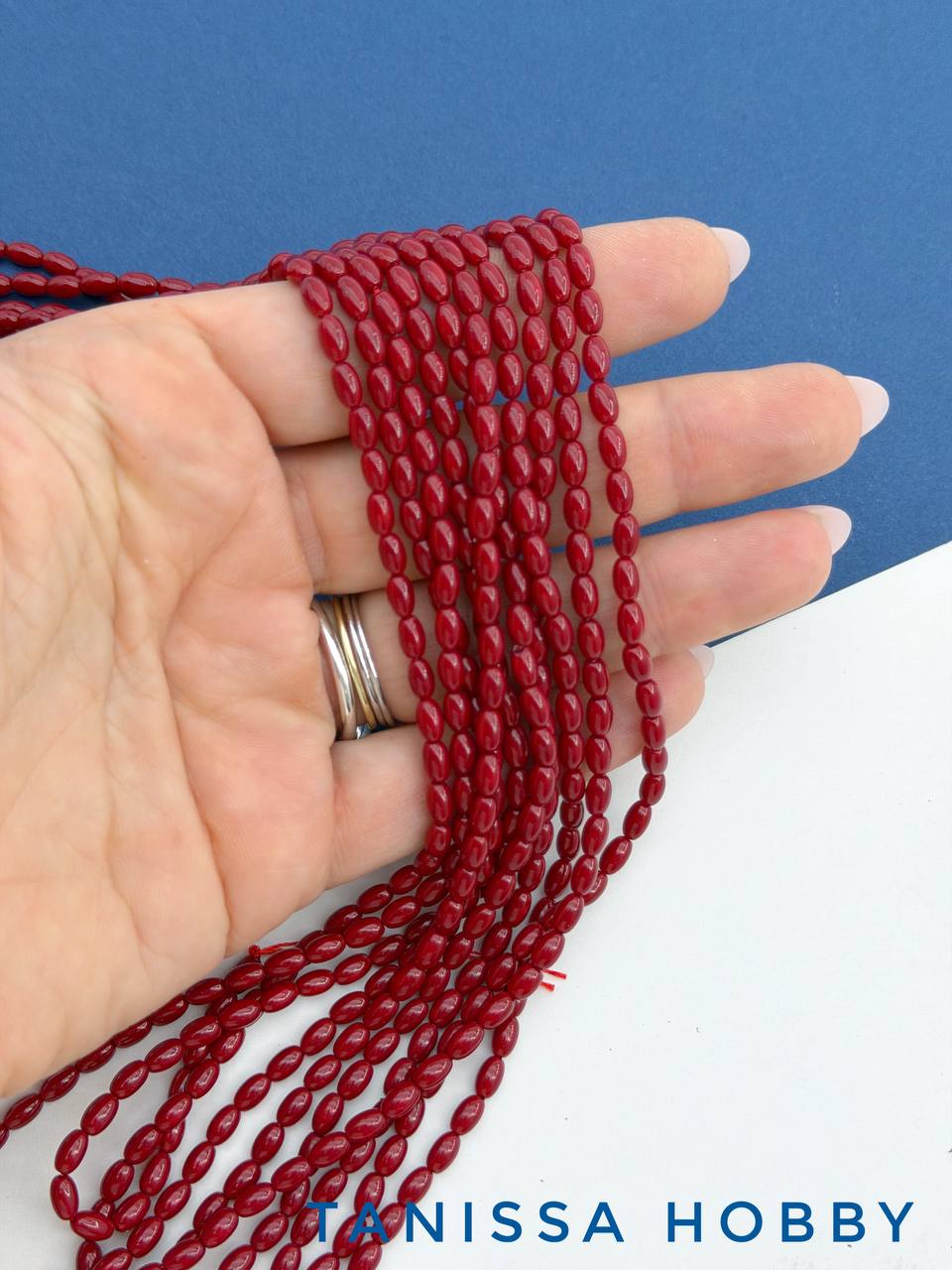 Жемчуг Майорка, рис 6х4мм, красный вишневый, нить, МА307