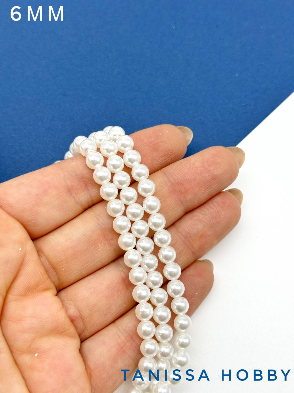 -Жемчуг Майорка, круглый белый, 6мм, нить, МА010