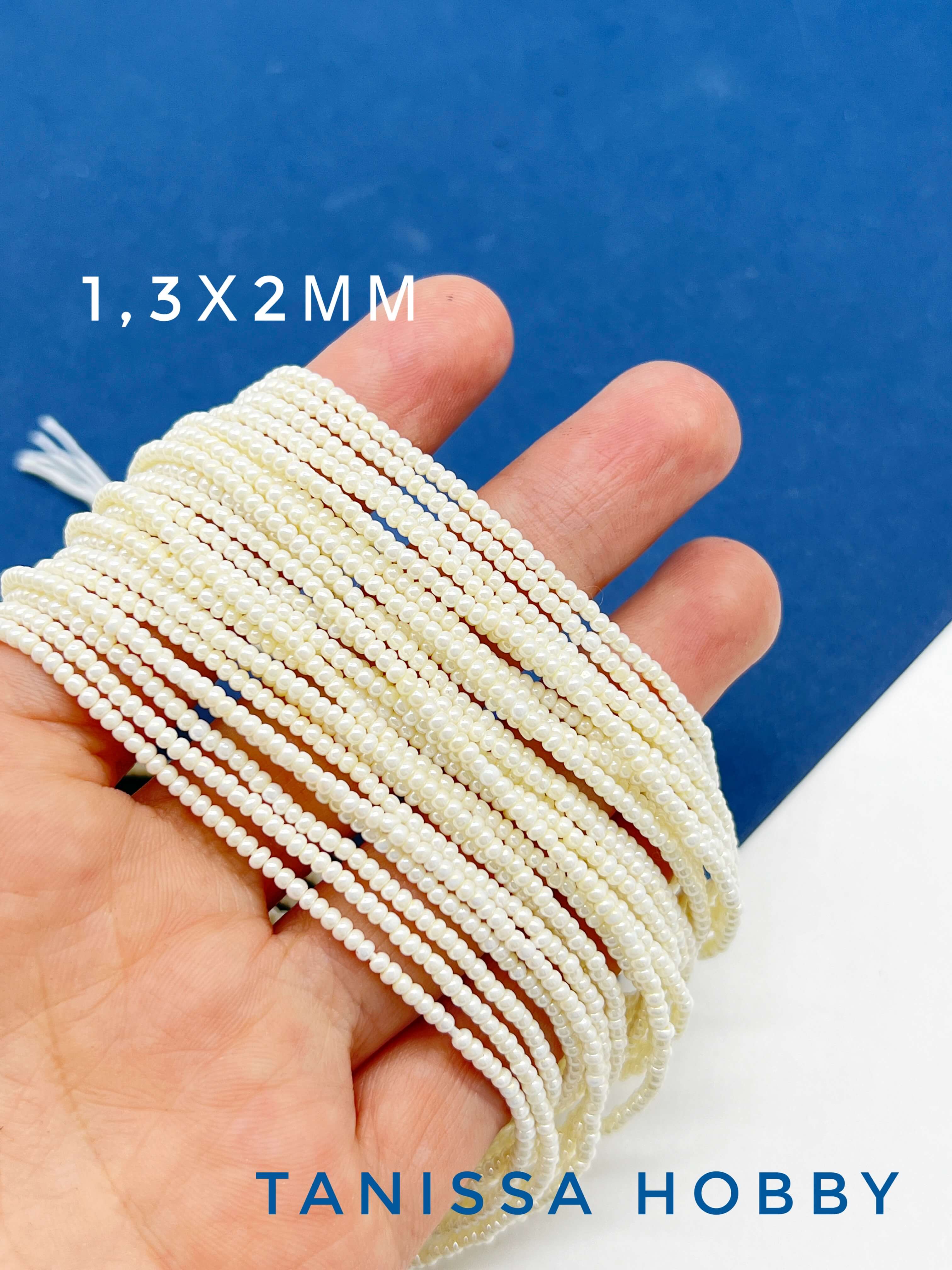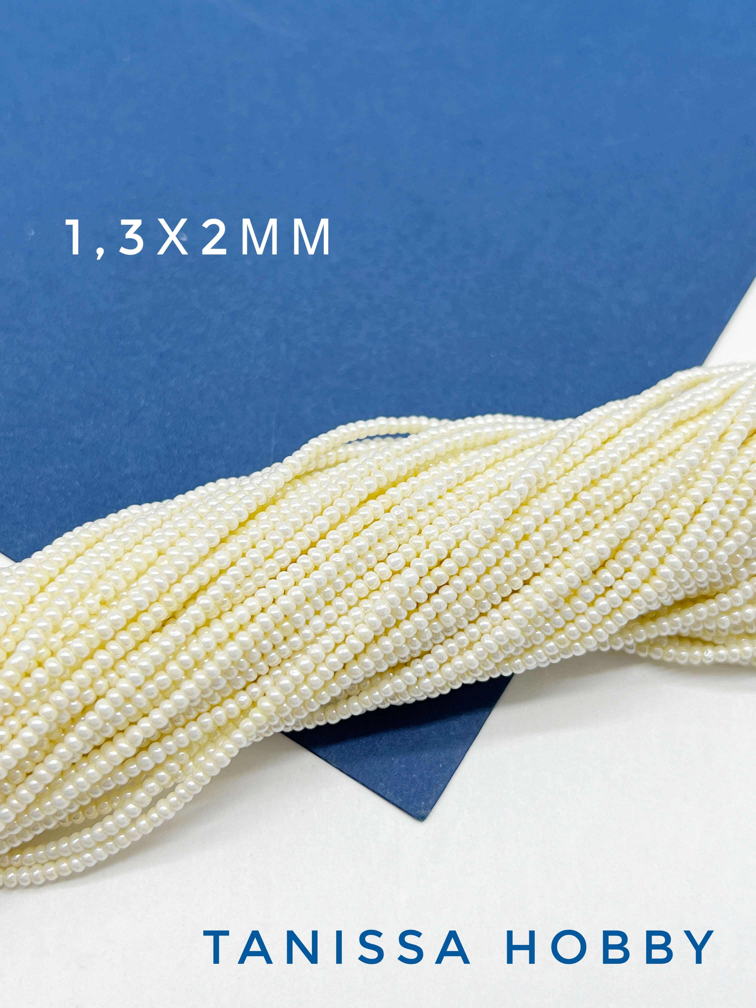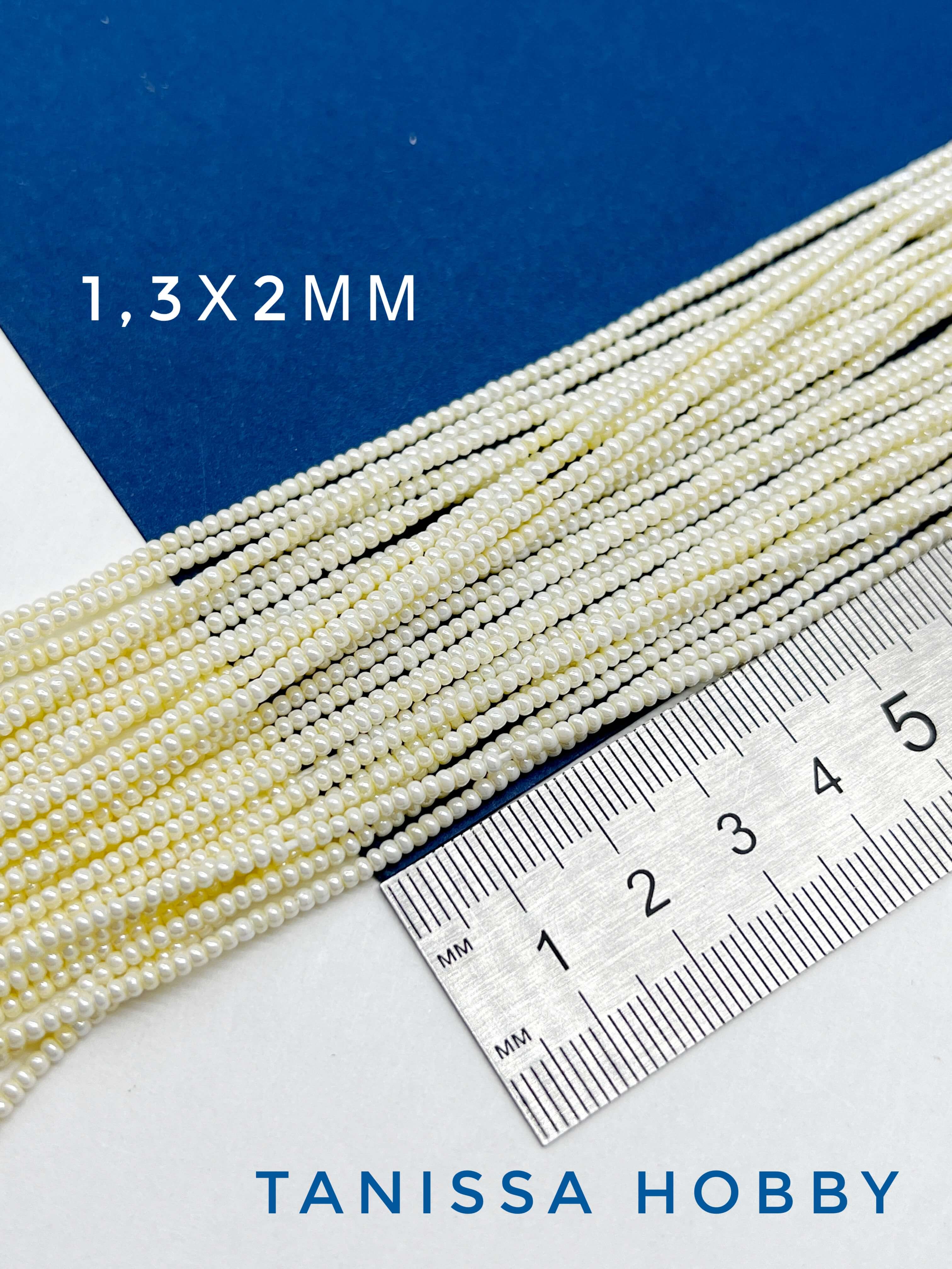 -Жемчуг Майорка 1,3х2мм кукуруза рондель, кремовый, нить, МА097