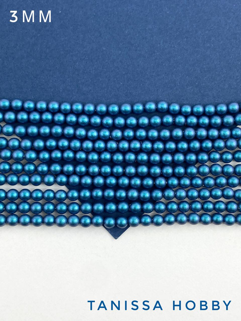 Жемчуг Майорка, круглый, 3мм, синий, Iridescent Matte Blue, нить, МА243