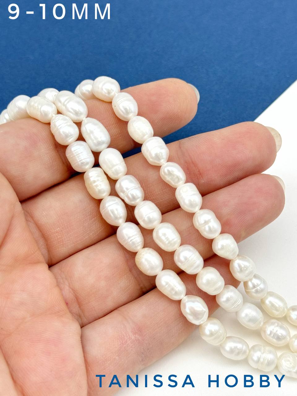 Жемчуг натуральный рис, 9-10мм, АВ, нить, Ж075