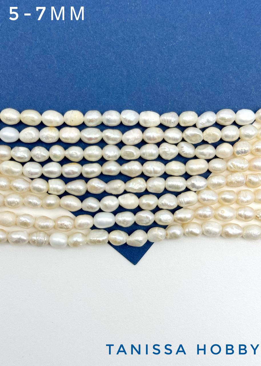 Жемчуг натуральный культивированный, рис, 5-7мм, В, нить, Ж032