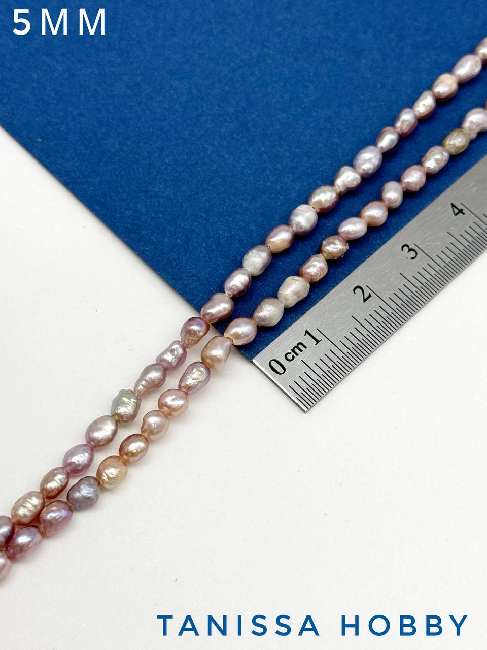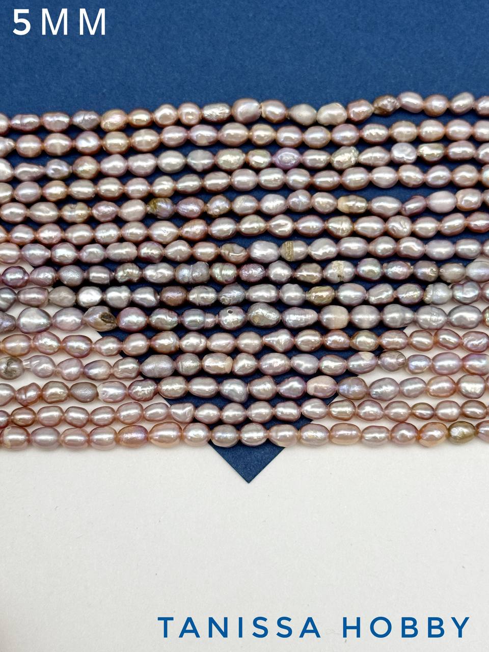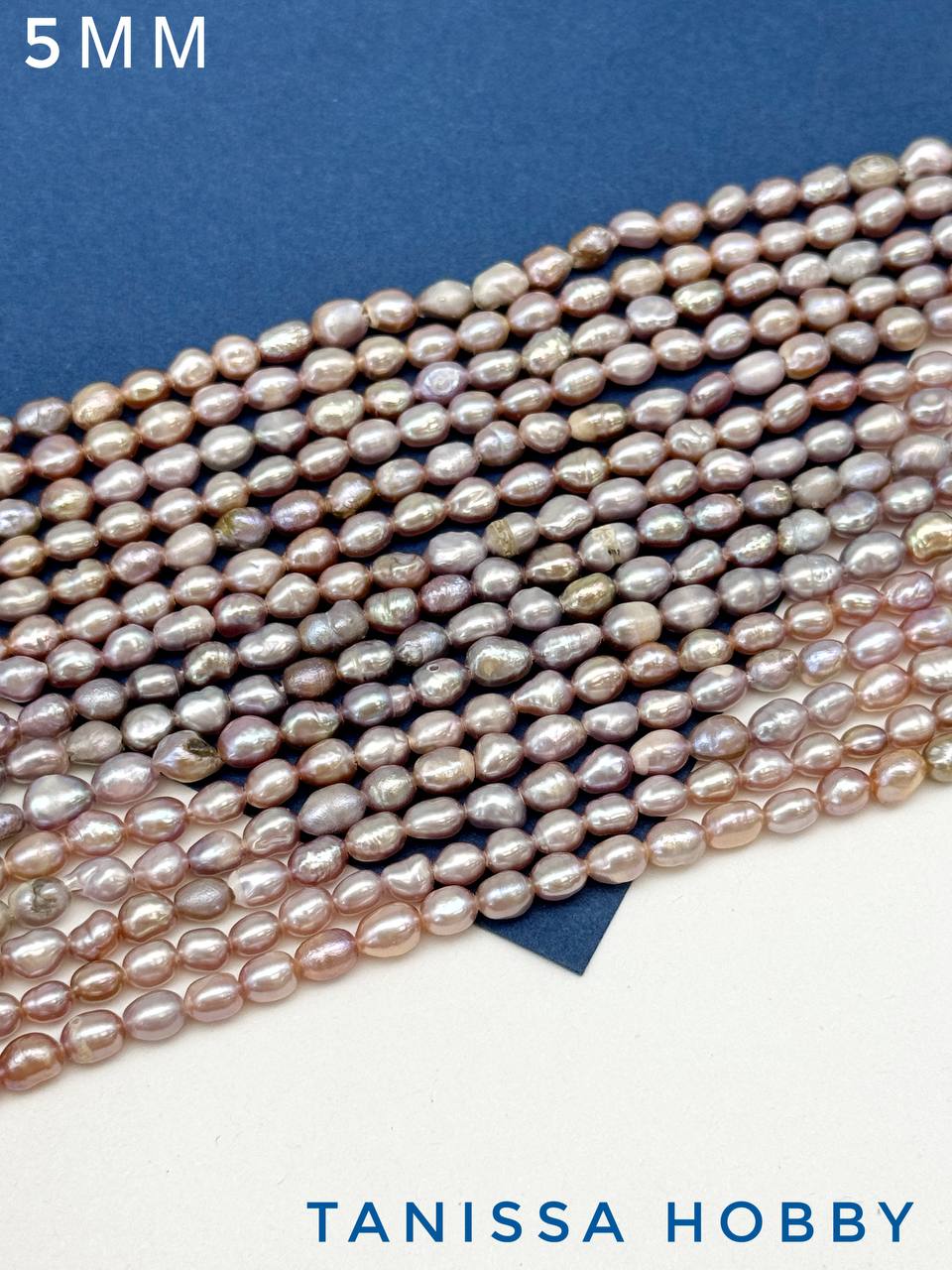 Жемчуг натуральный рис, 5мм, АВ, розовый фиолетовый, нить, Ж010