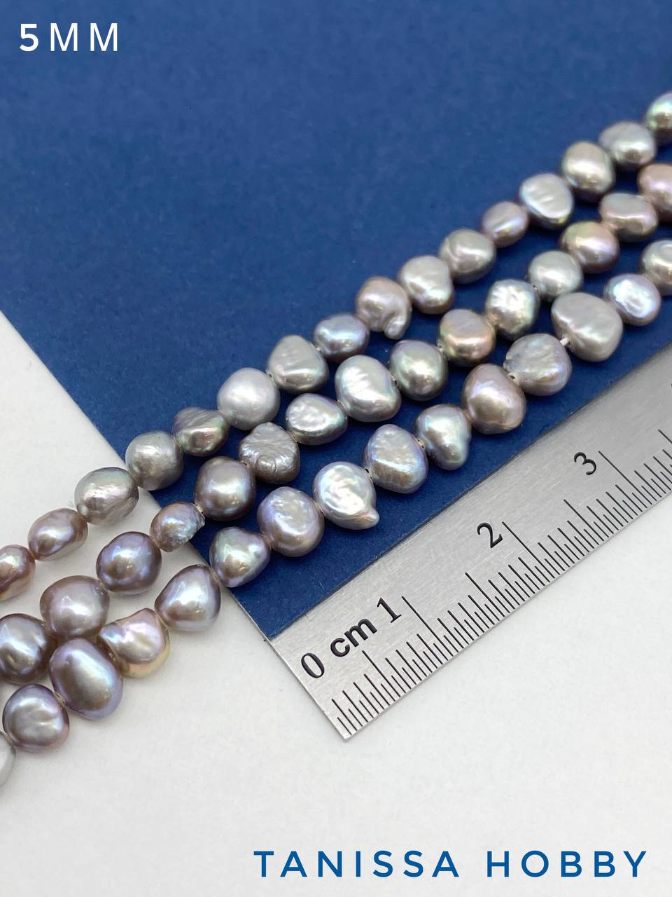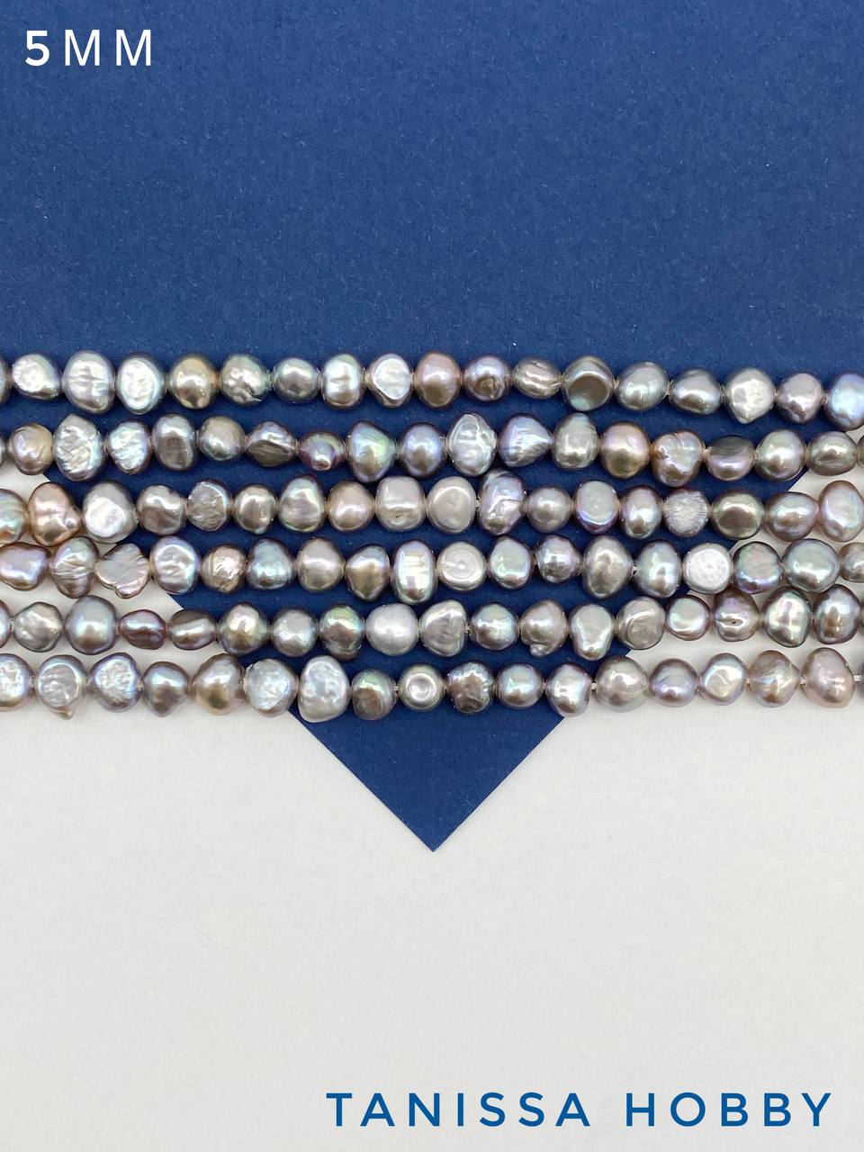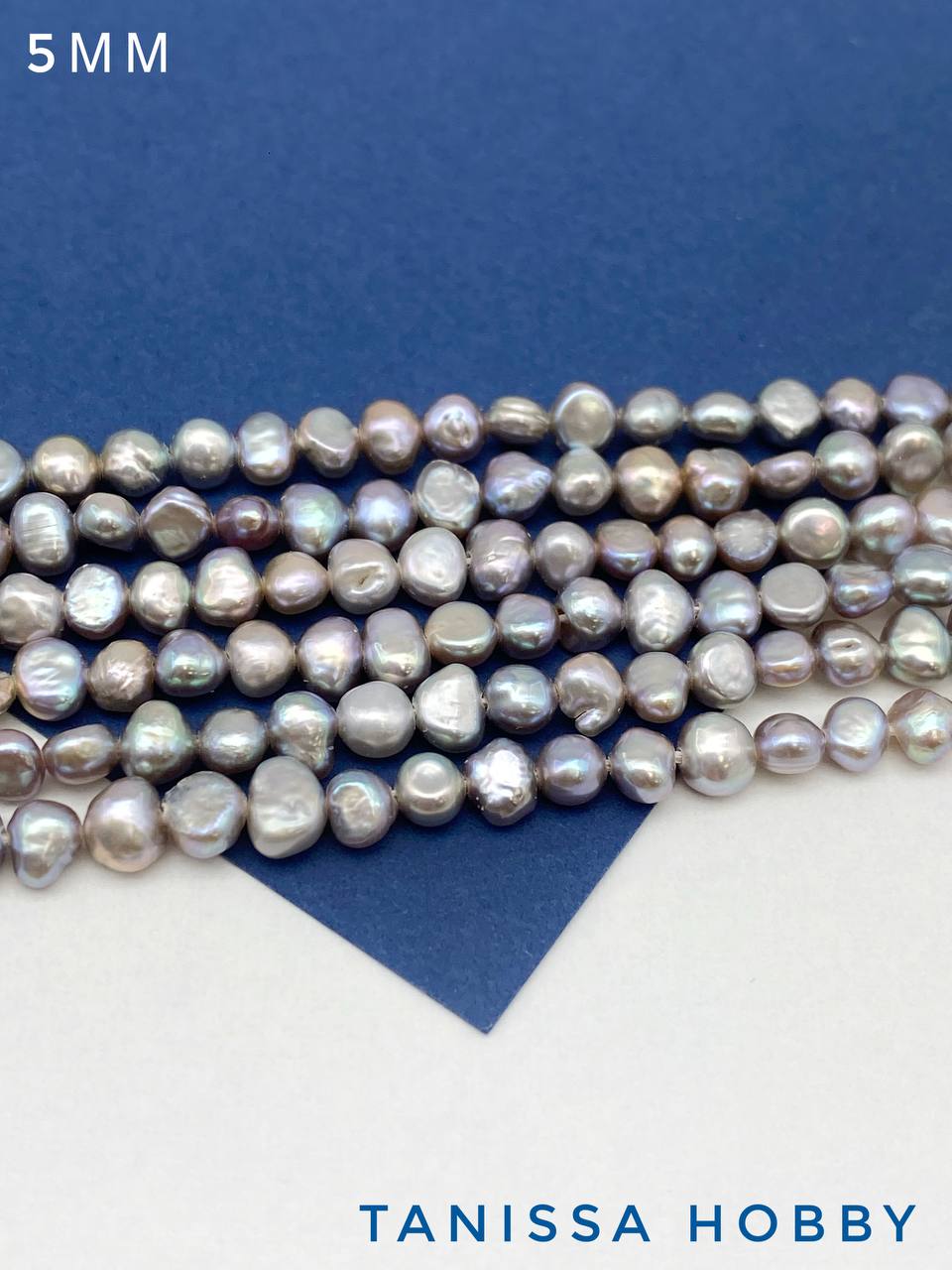 Жемчуг барочный плоский, А, 5мм, серый, нить, Ж100