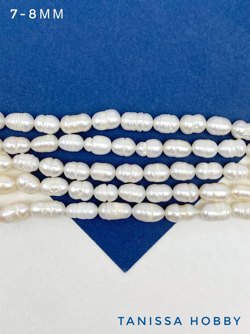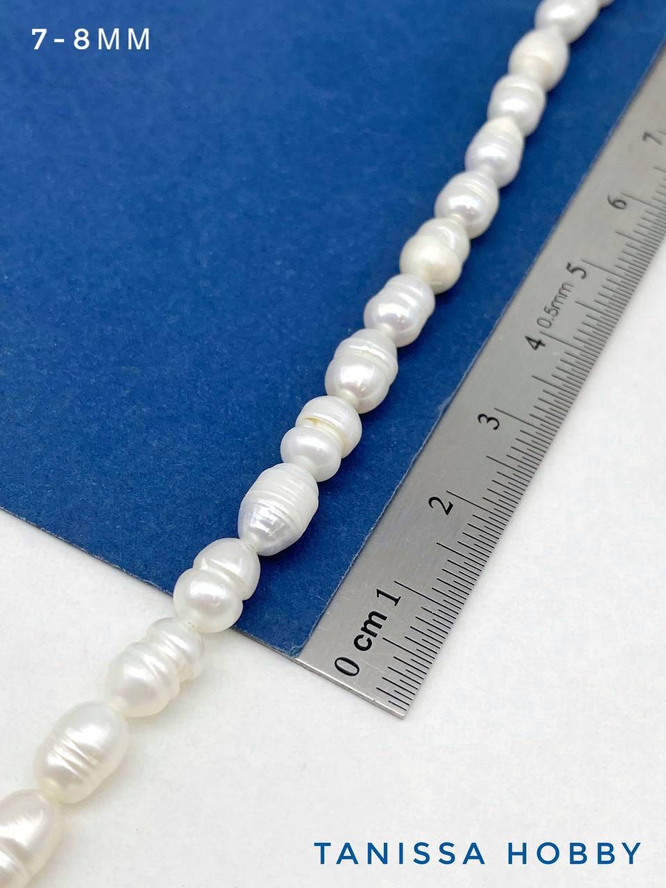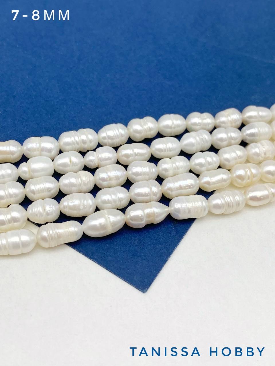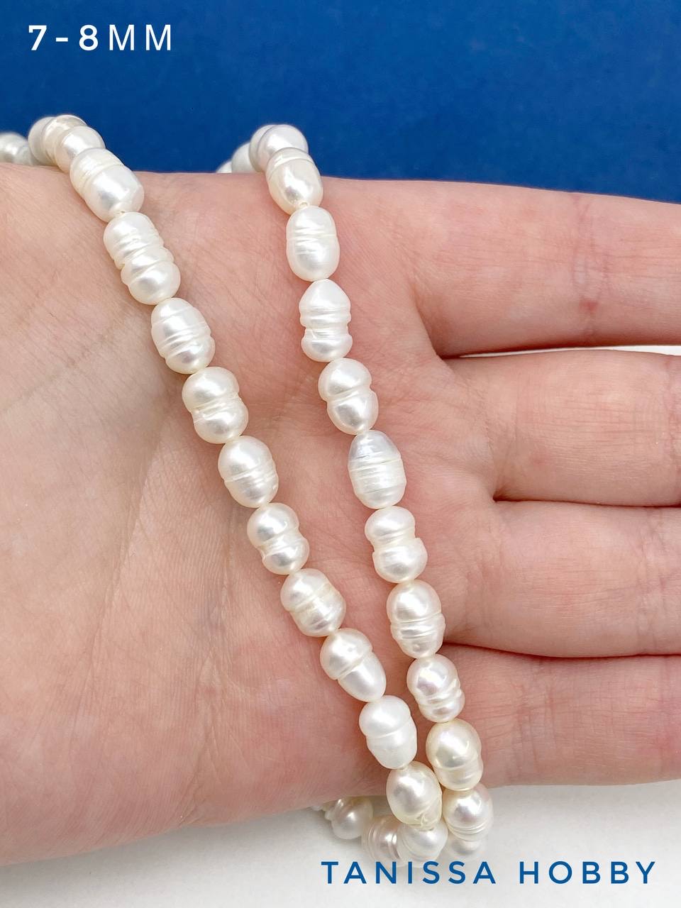 Жемчуг натуральный культивированный рис, 7-8мм, В, нить, Ж178