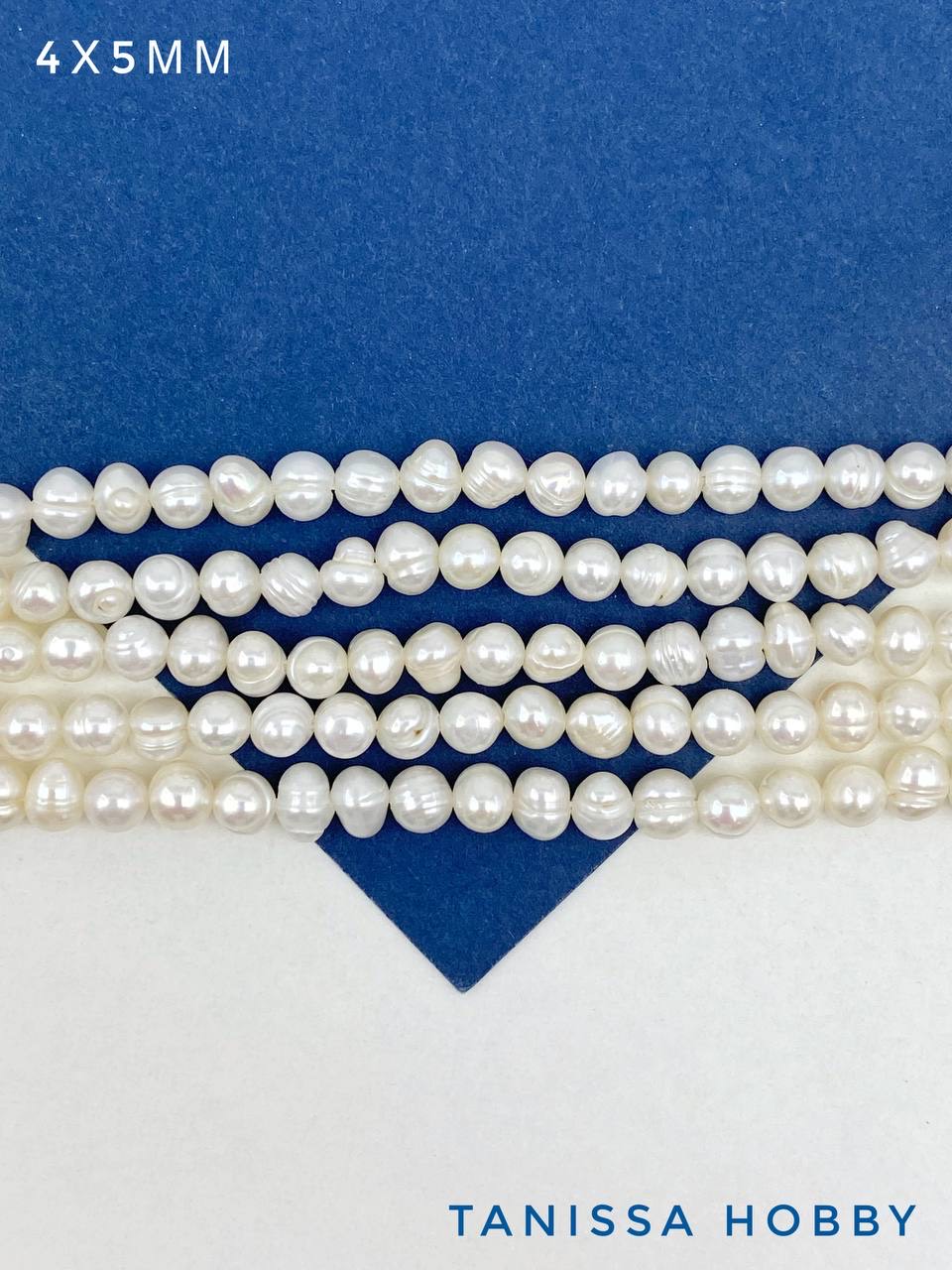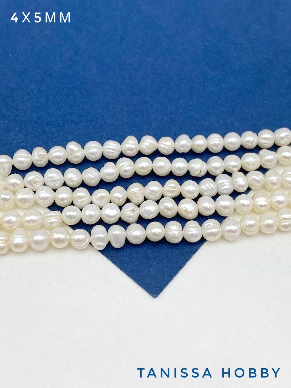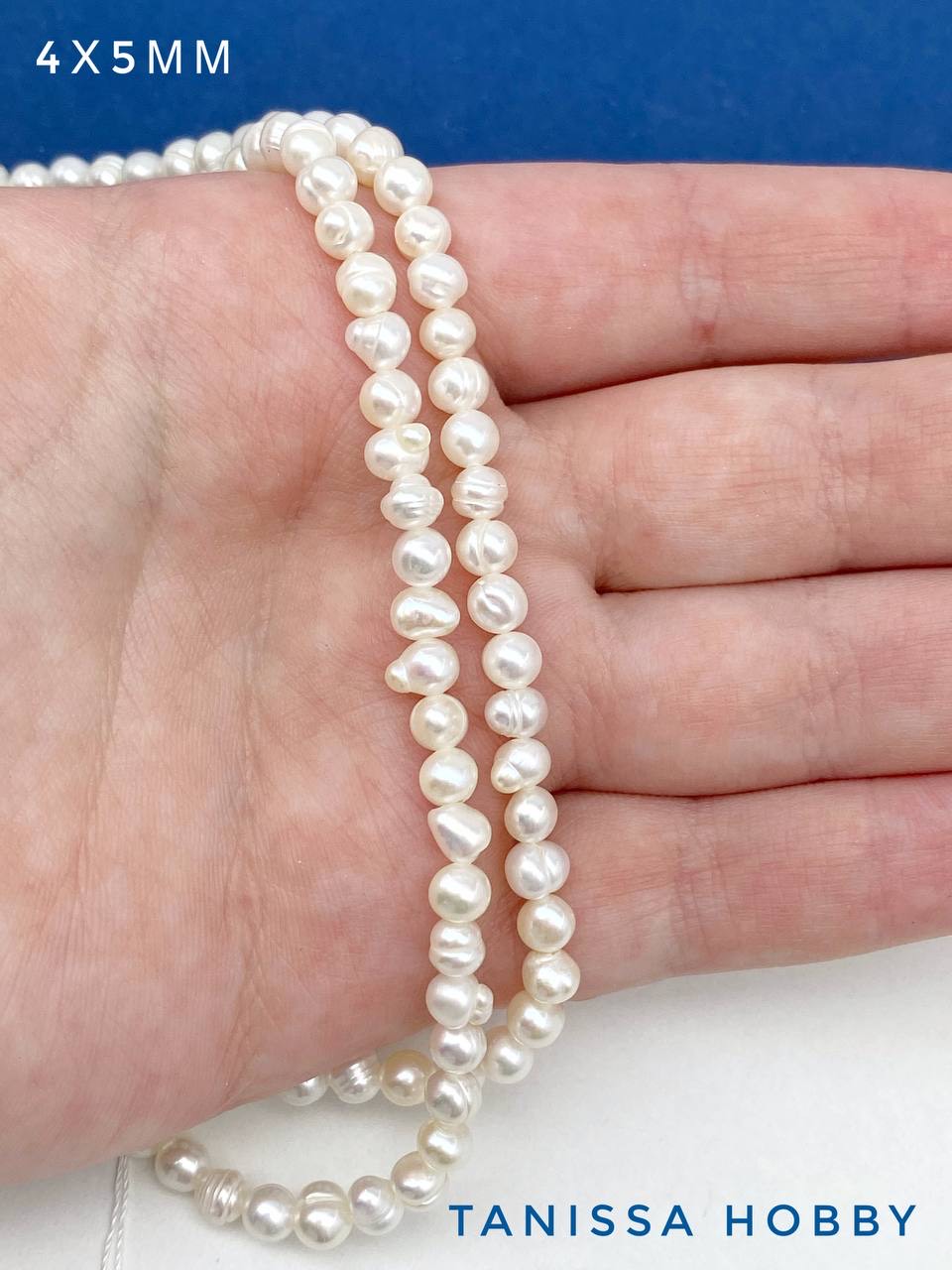 Жемчуг натуральный культивированный, круглый, яйцо, 4мм, АВ, нить, Ж181