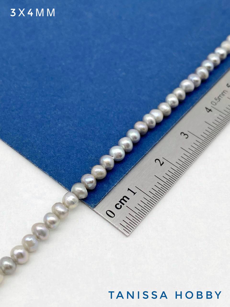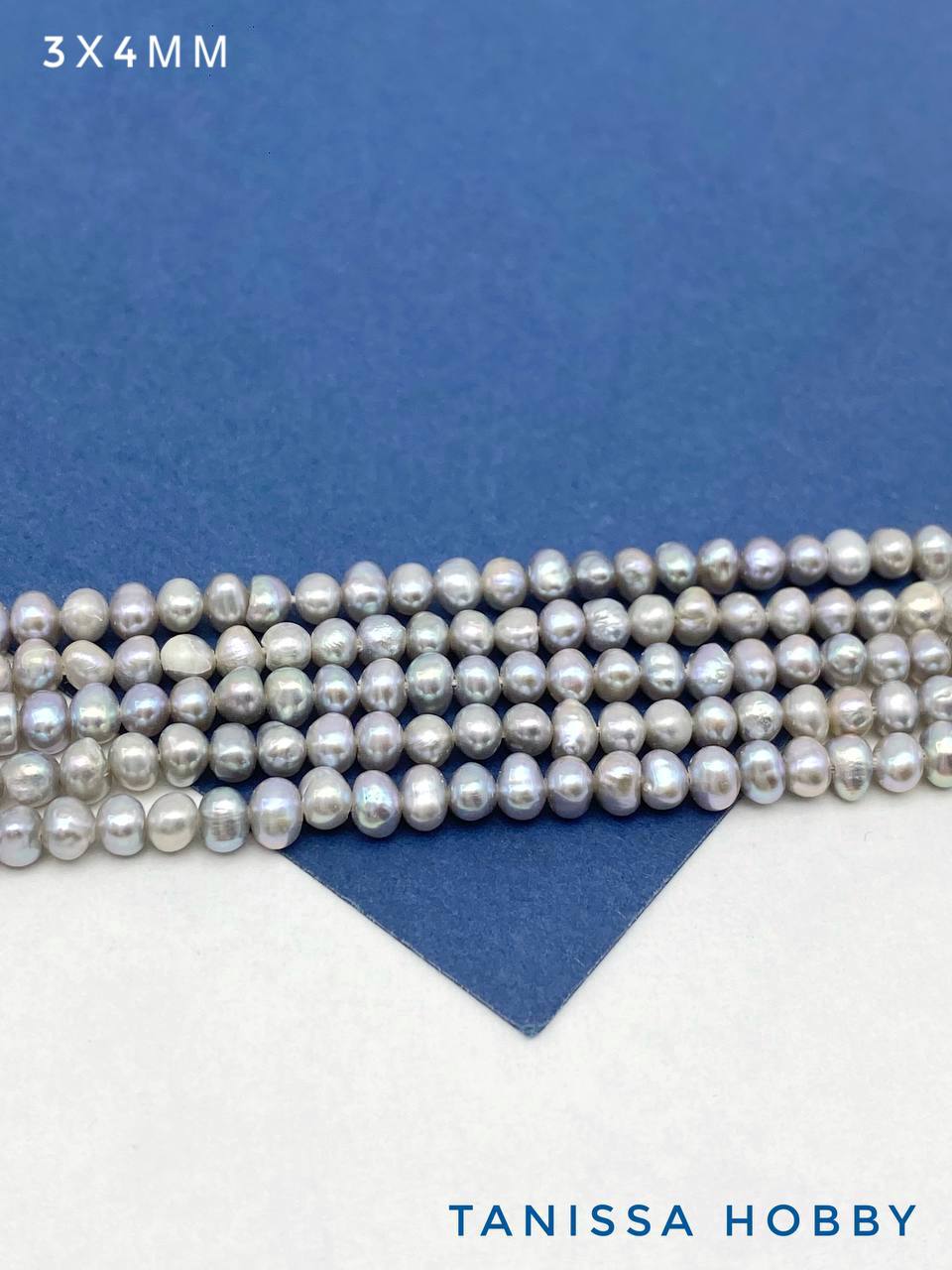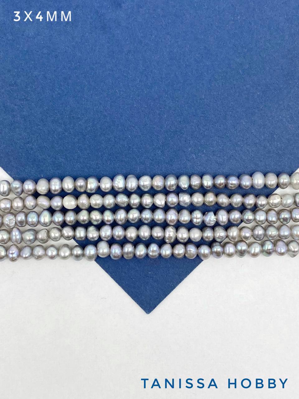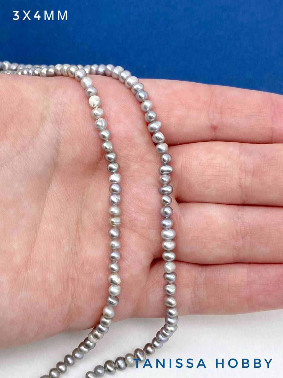 Жемчуг натуральный культивированный, кукуруза, серый, 3х4мм, 1/2 нити, А, Ж190