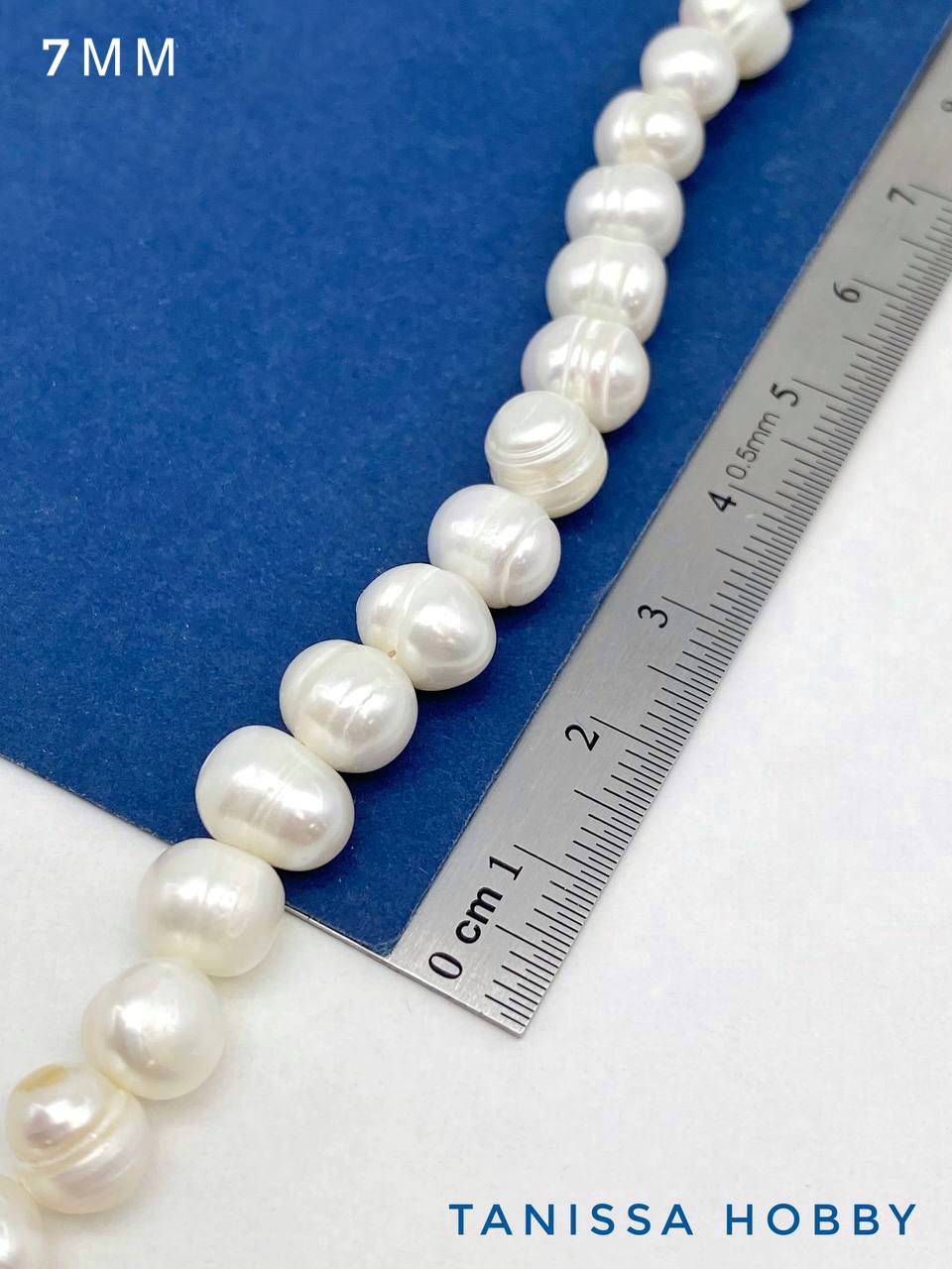 Жемчуг натуральный культивированный, круглый, белый, 7мм, АВ, нить, Ж202