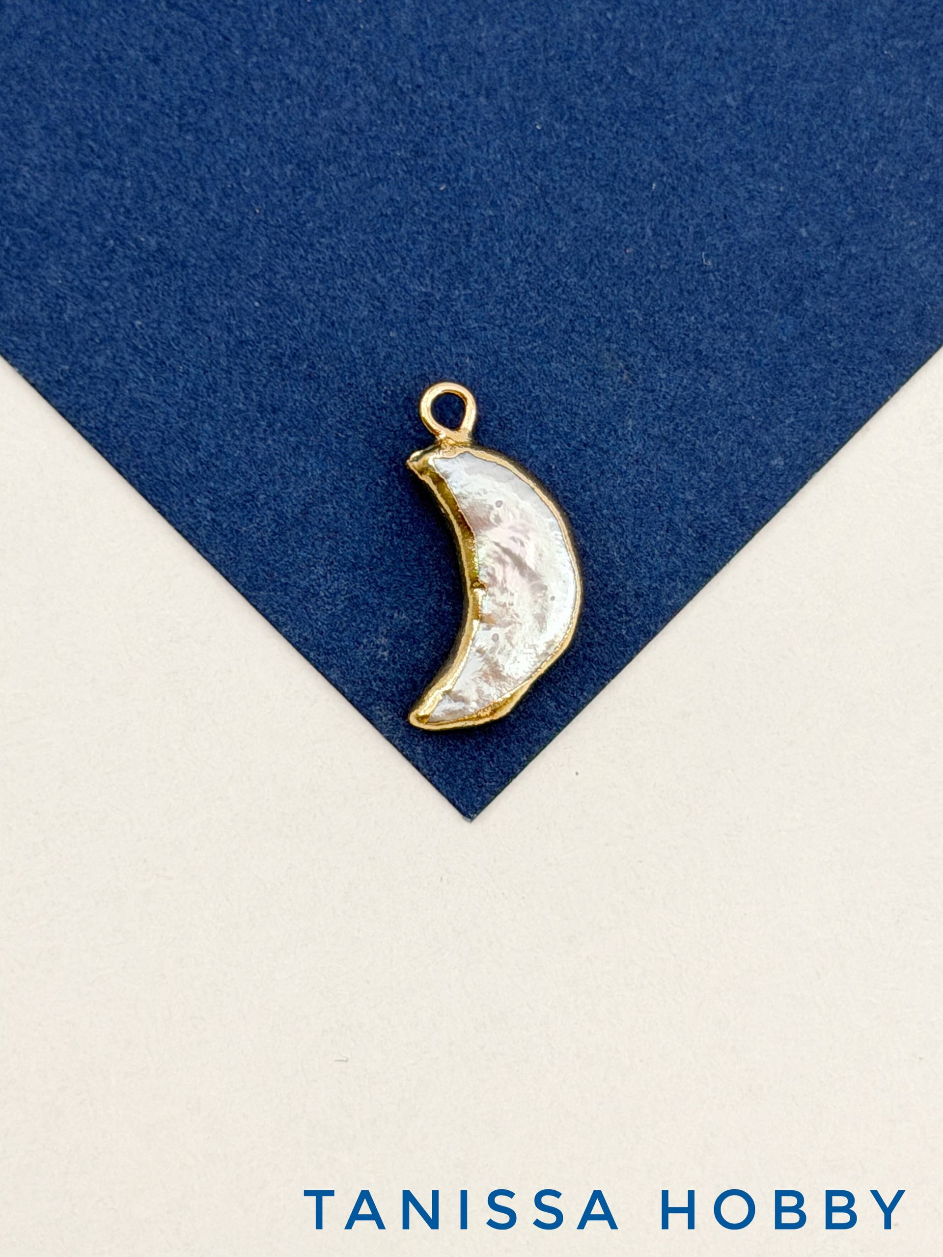 Жемчуг культивированный подвеска луна месяц, 20х10мм, позолота, Ж117