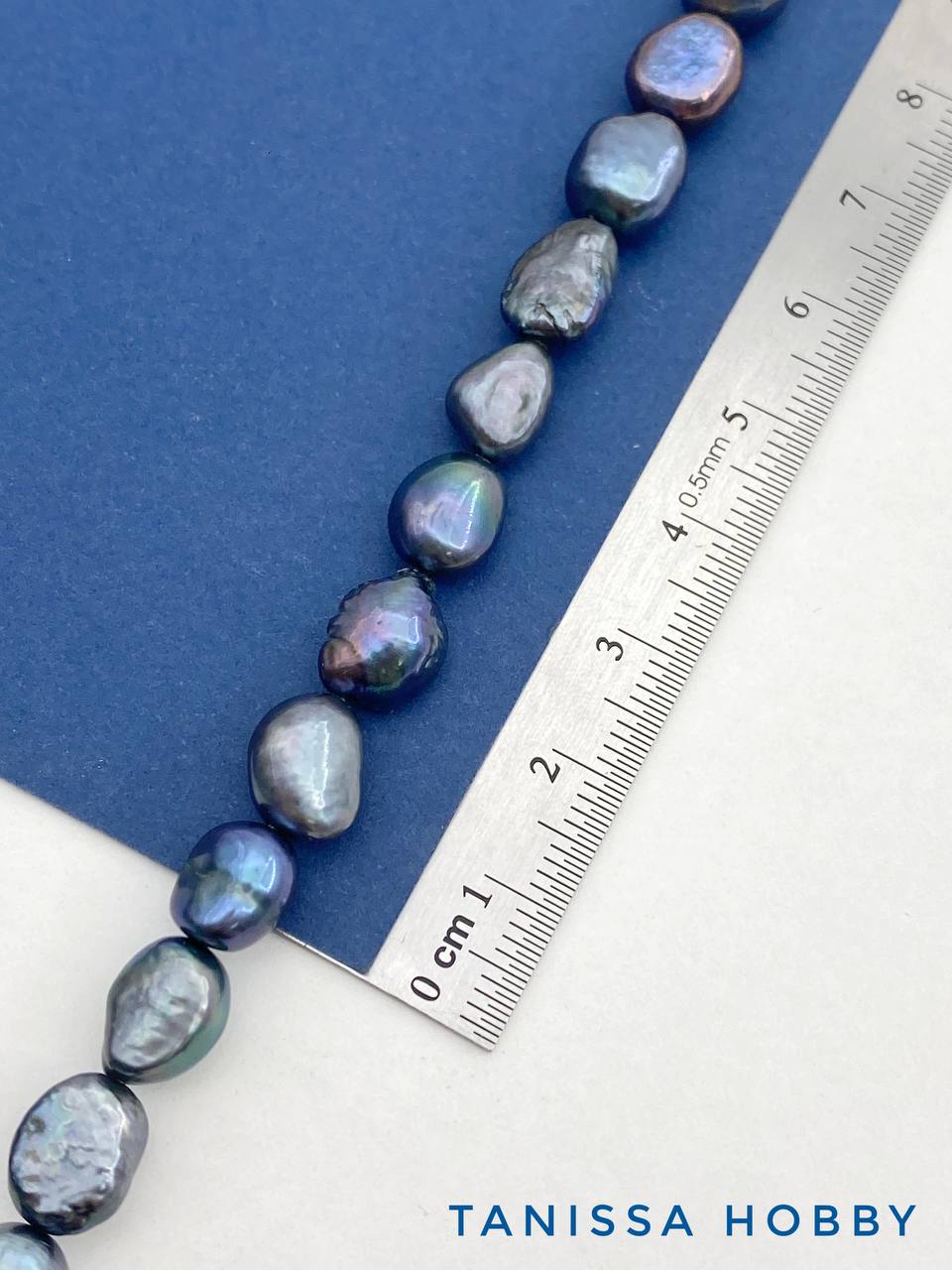 Жемчуг барочный картошка, культивированный, синий черный 9-10мм, АВ, нить, Ж059