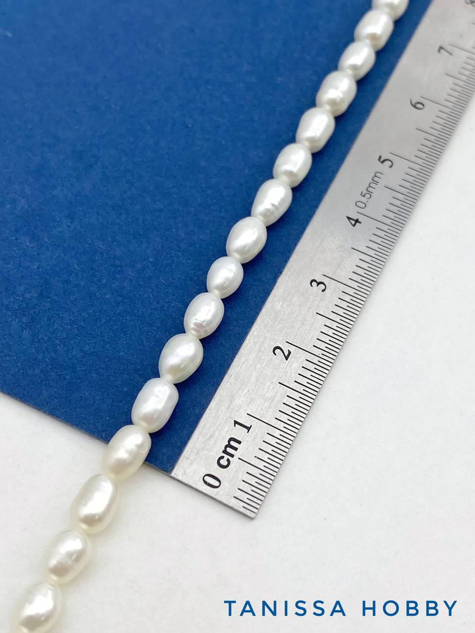 Жемчуг натуральный культивированный рис, 6мм, А-, нить, Ж160